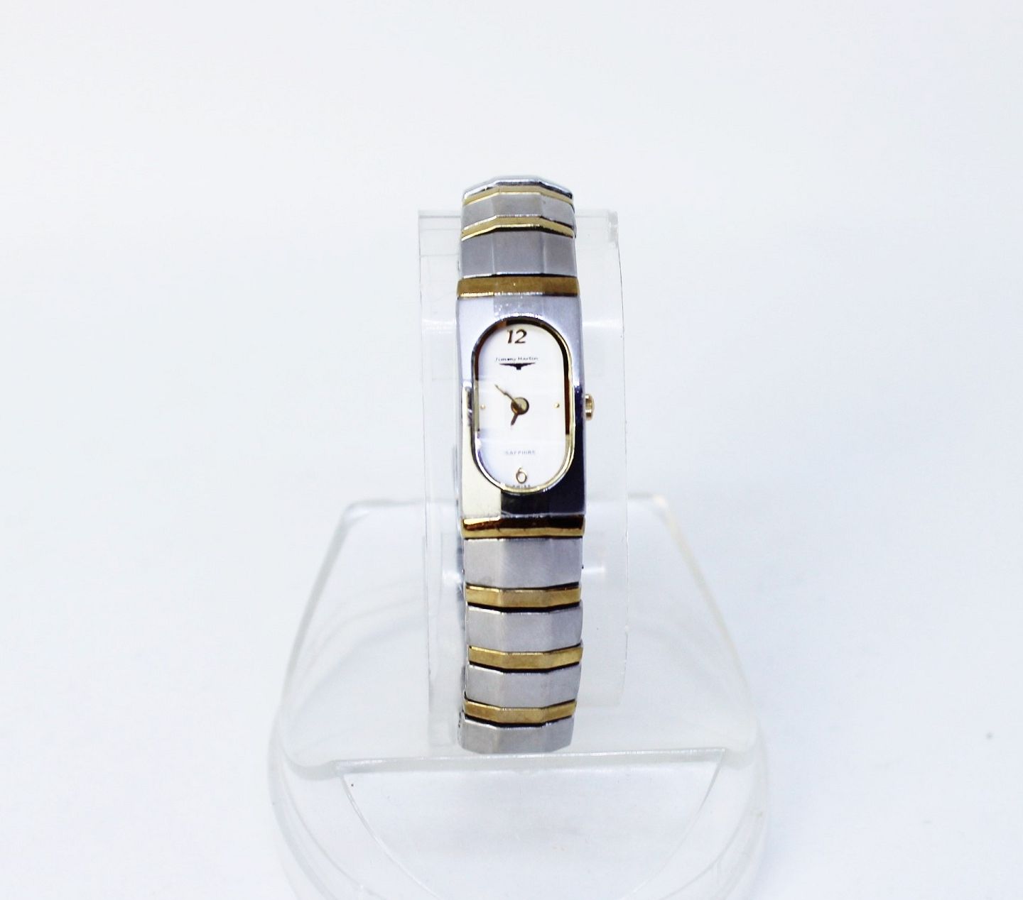 Jimmy Martin dameur af safir glas og 14 kt. forgyldt med schweizisk quartz urværk. Uret er vantæt.