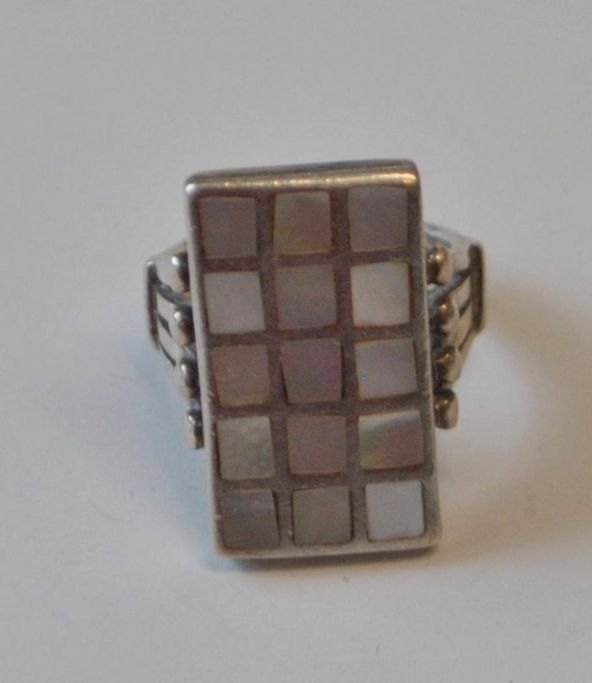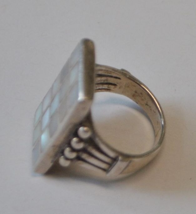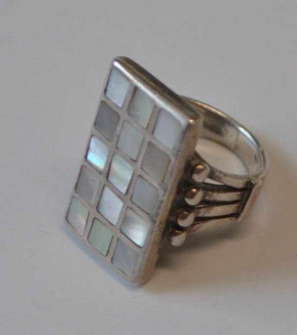 Dansk sterling ring i sølv, 20. årh. Med perlemor.