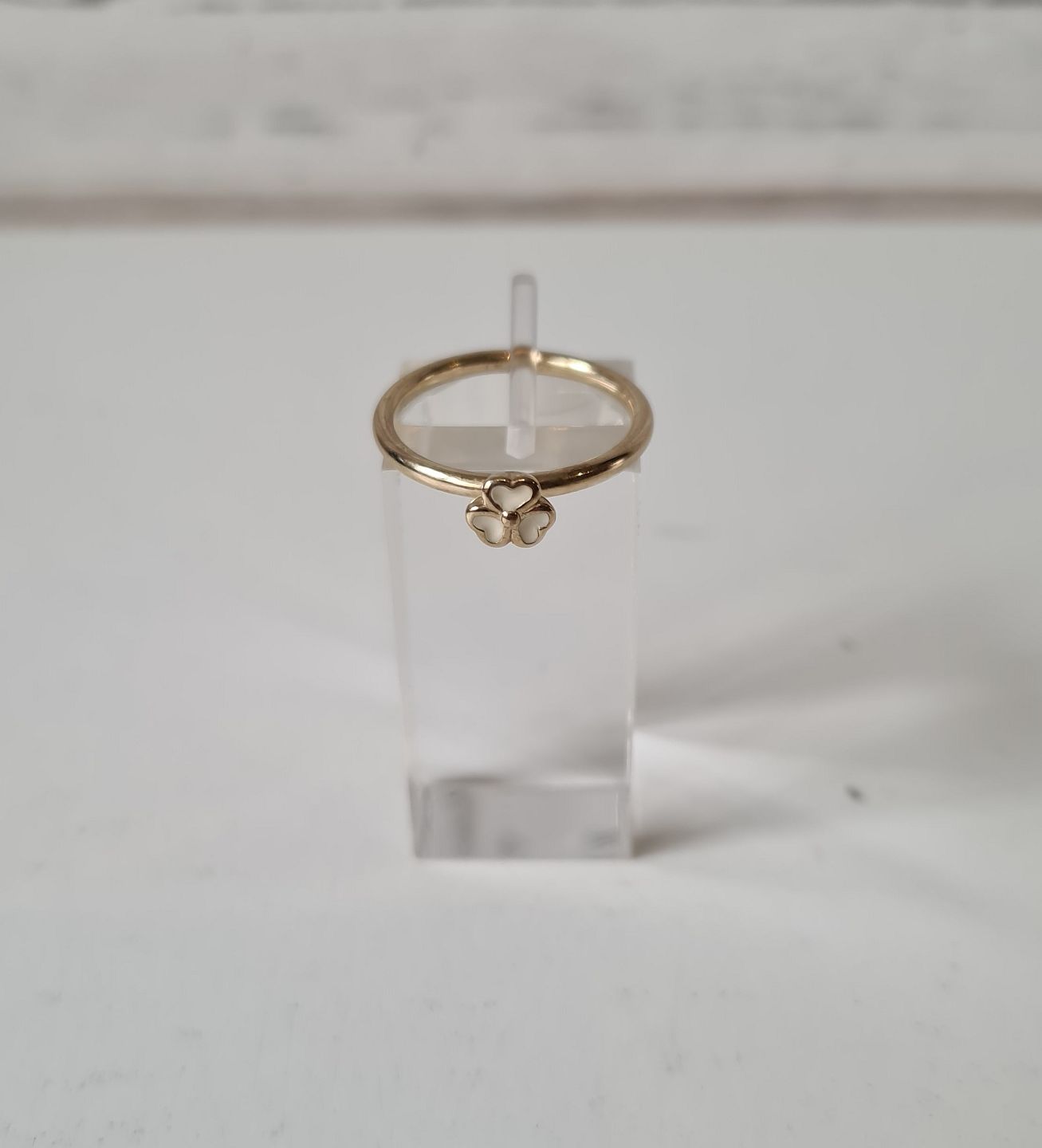Spinning ring in 8 kt gold with three-leaf clover in white enamel