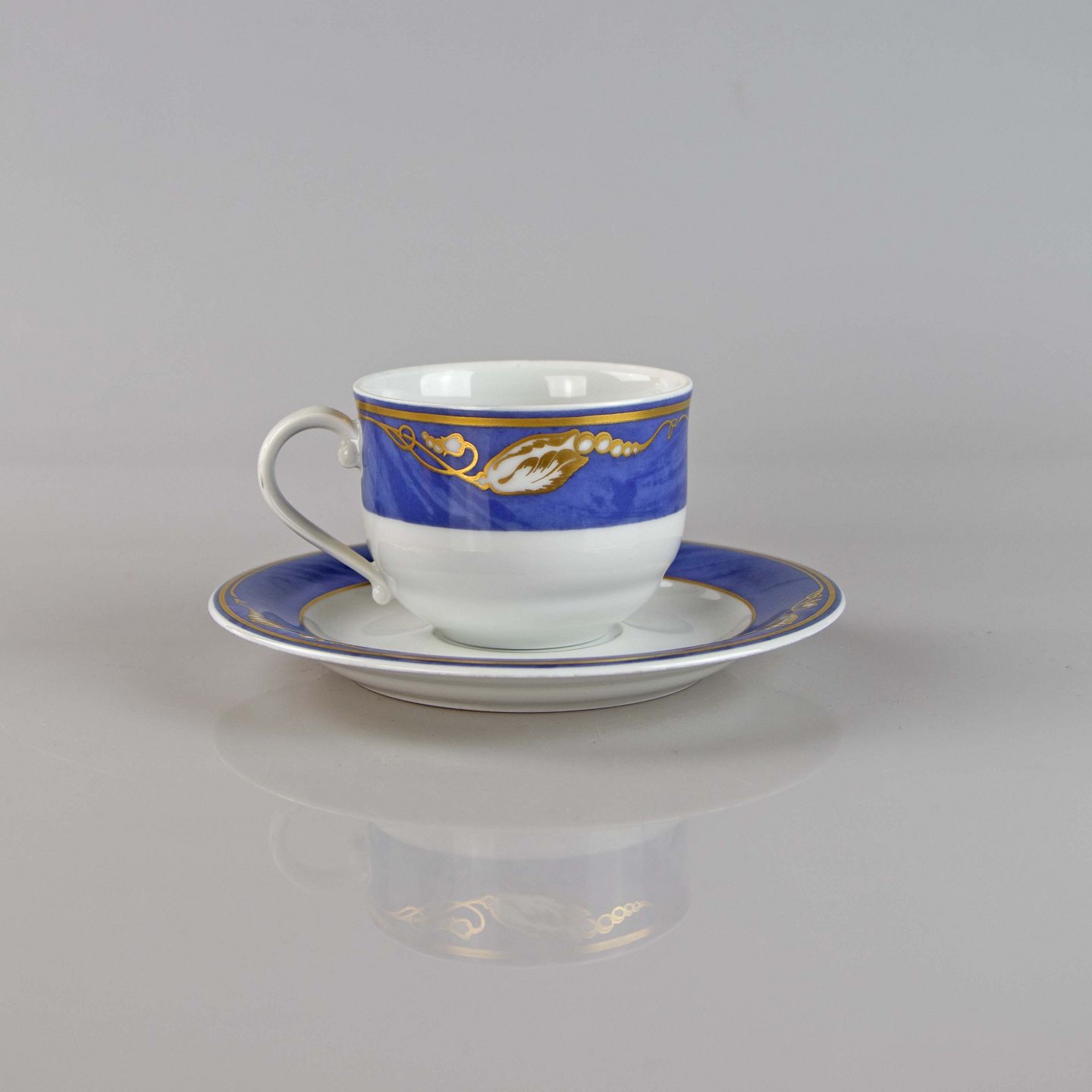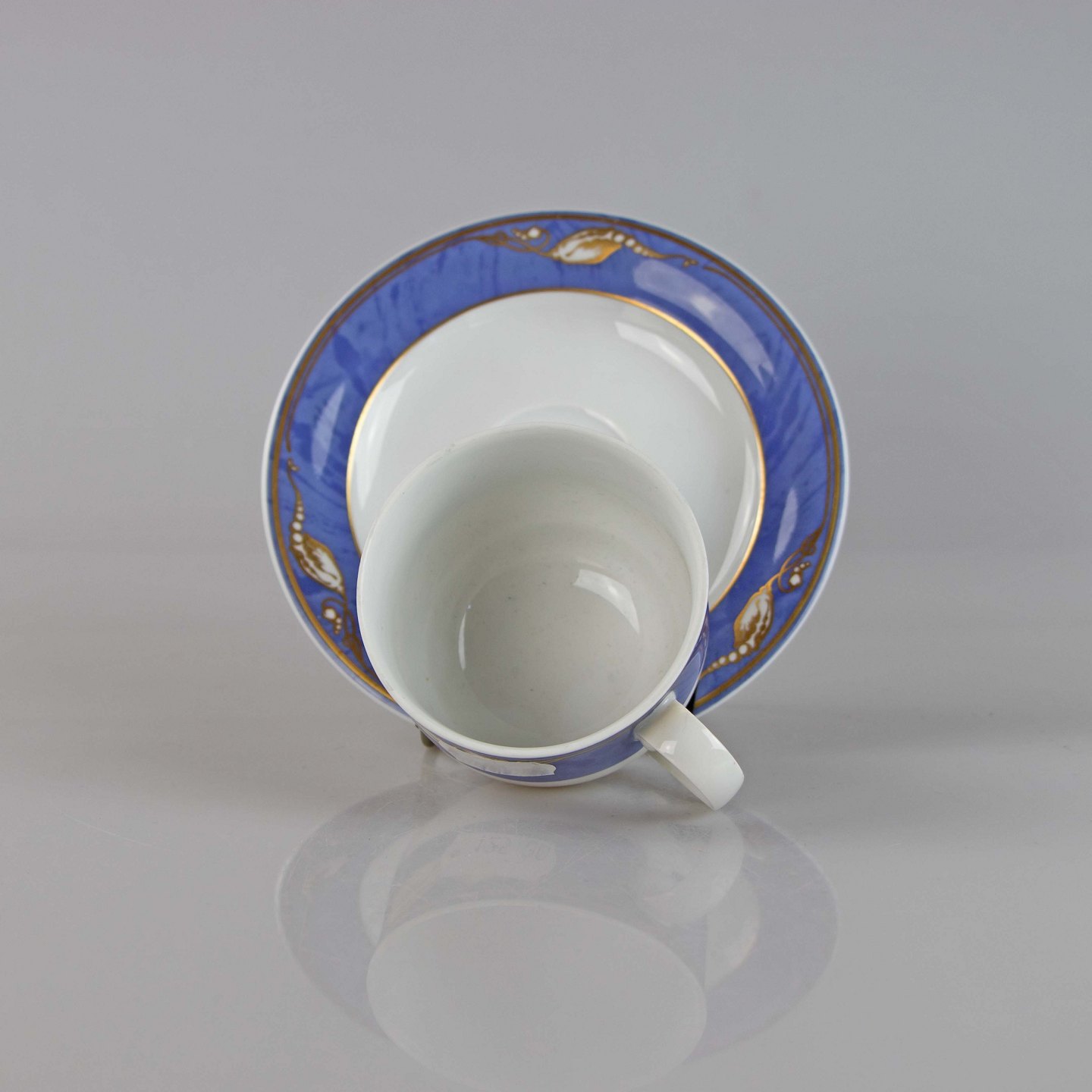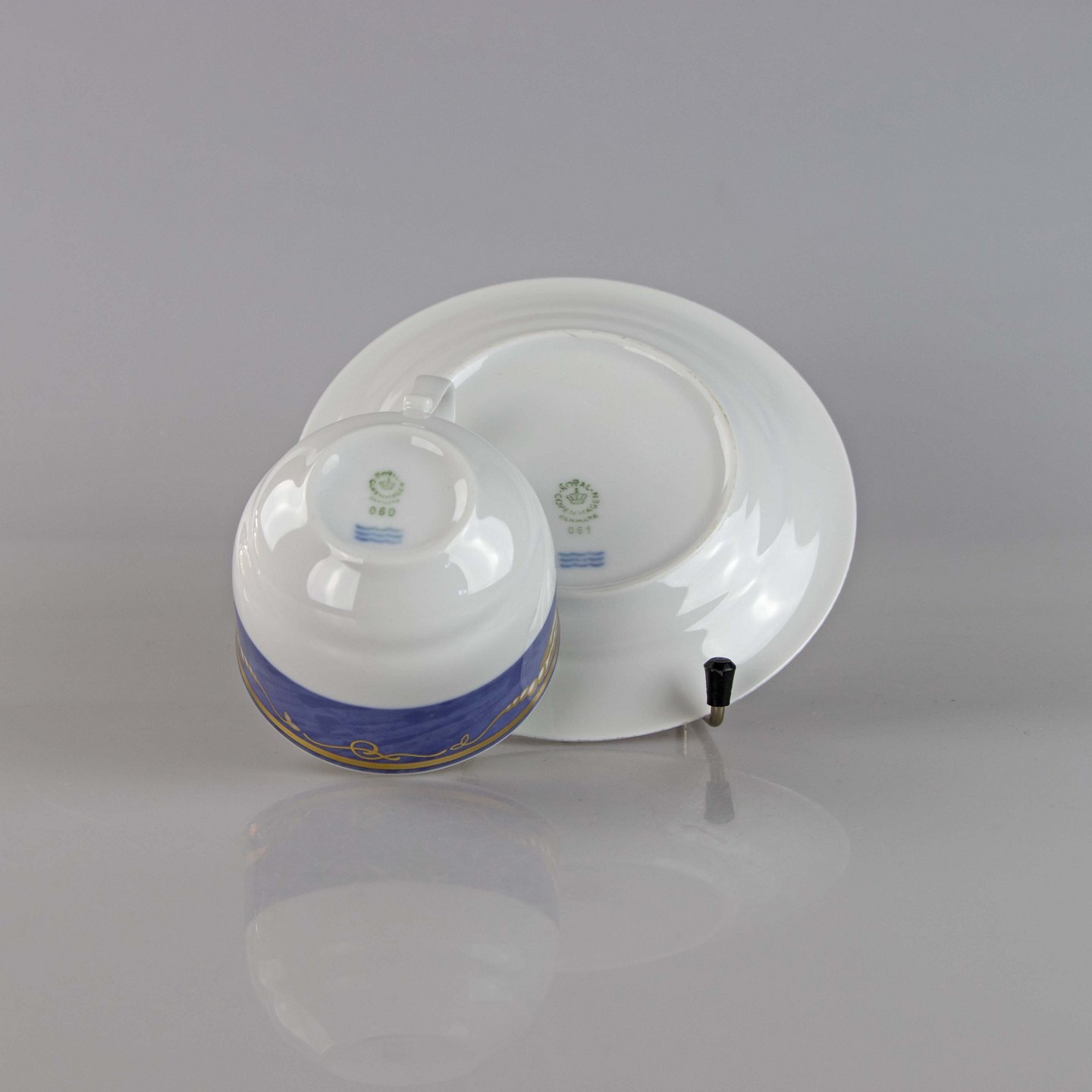 Moccakop med underkop i porcelæn fra stellet Lyseblå magnolia nr. 060 og 061