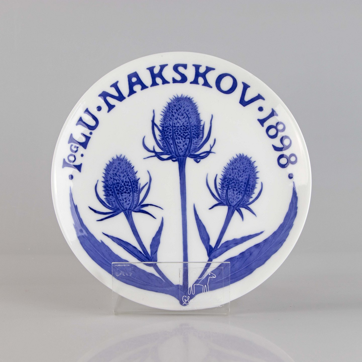 Platte i porcelæn med teksten I. og L.U. Nakskov 1898