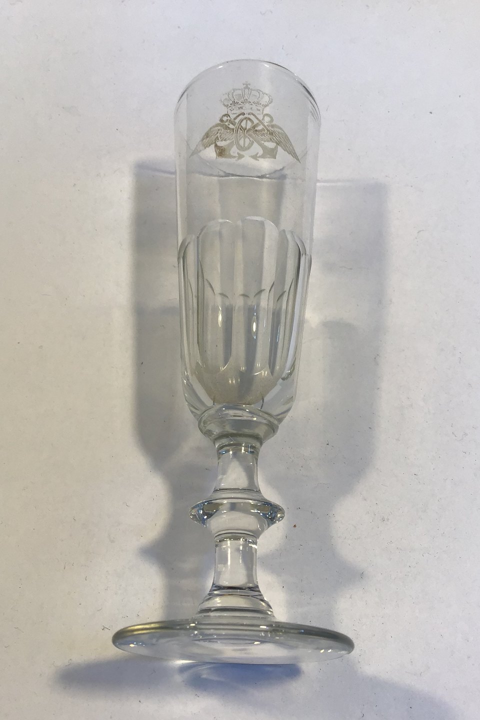 Holmegaard Christian VIII Fløjte med DSB logo Vinger, anker hjul under krone Måler 15.5 cm (Brugt på Storebæltsfærgerne)