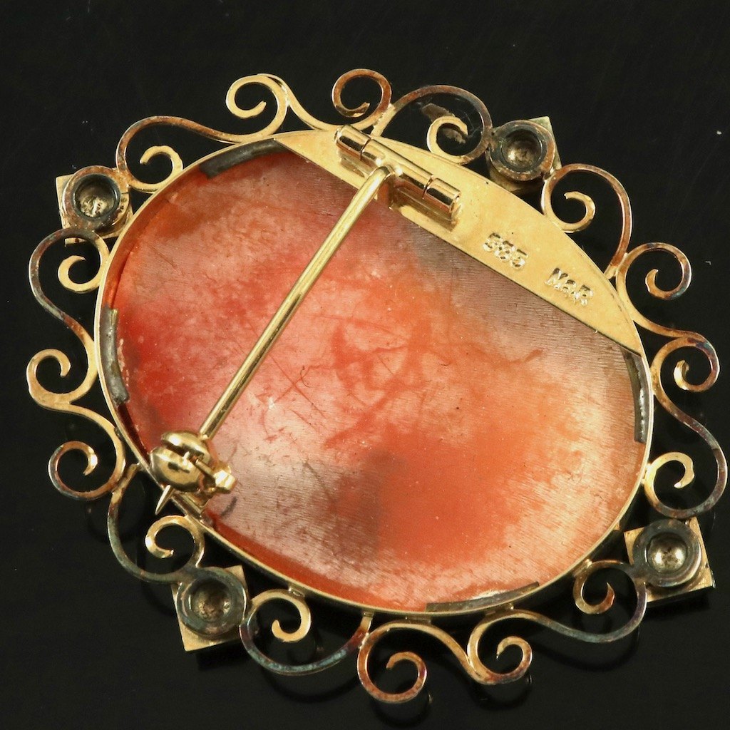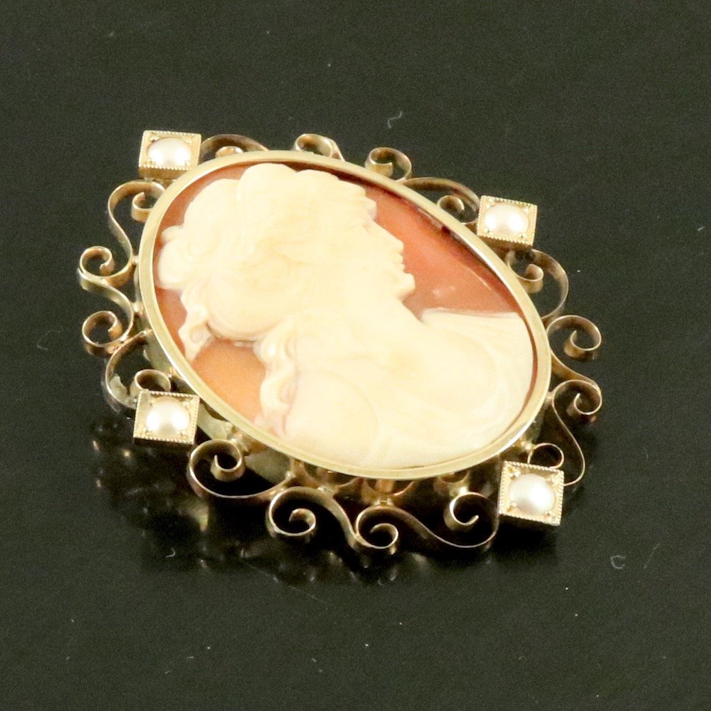 Martin Rasmussen - Kbh. Kamé broche i 14k Guld med perler.