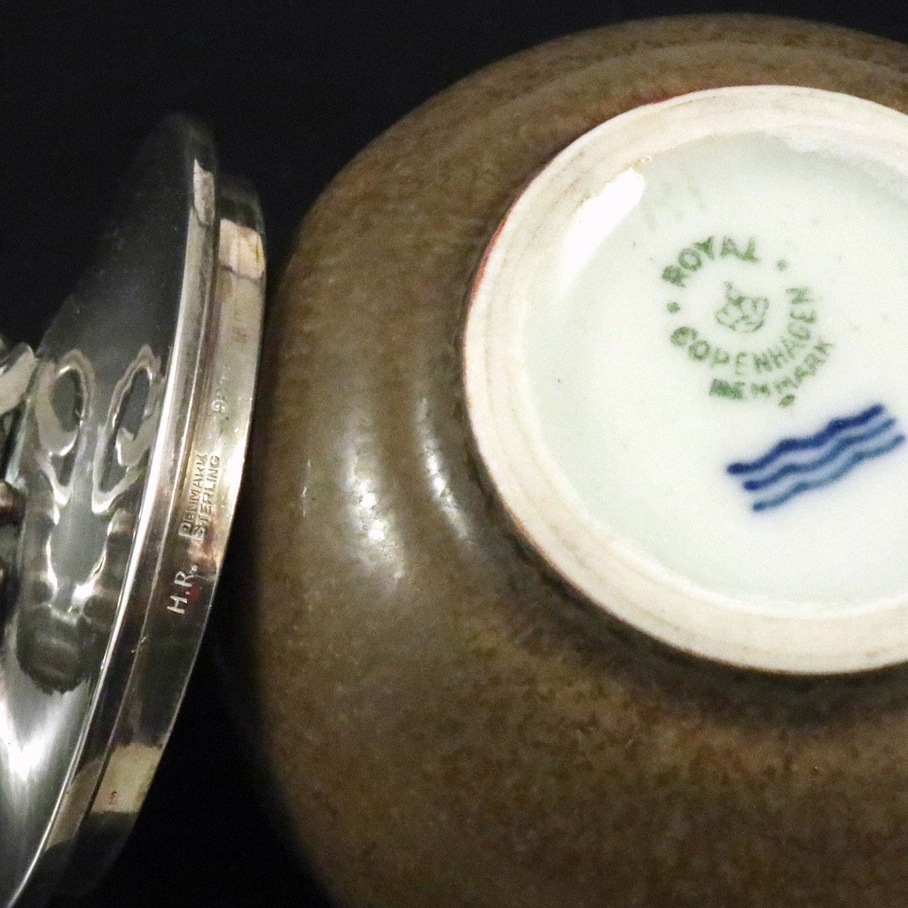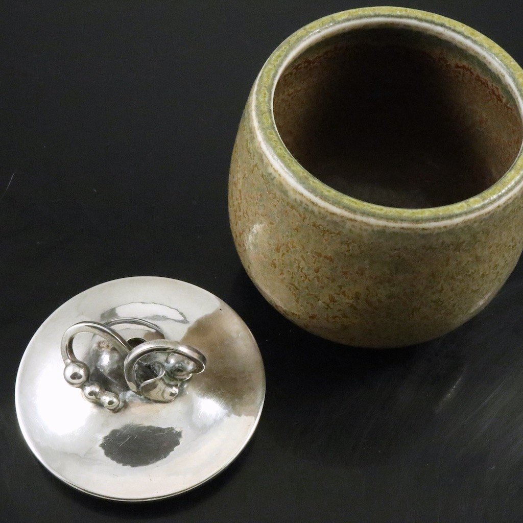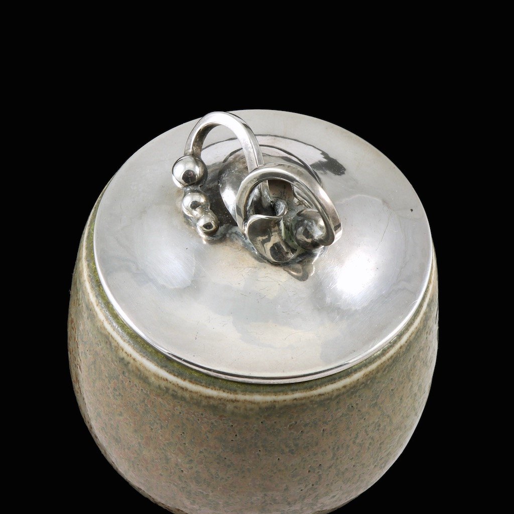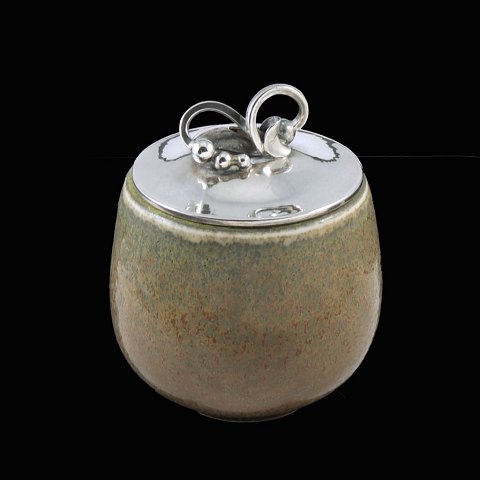 Royal Copenhagen - Holger Rasmussen. Krukke i stentøj med låg i Sterling Sølv.