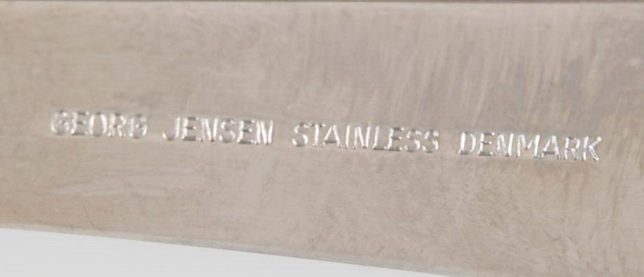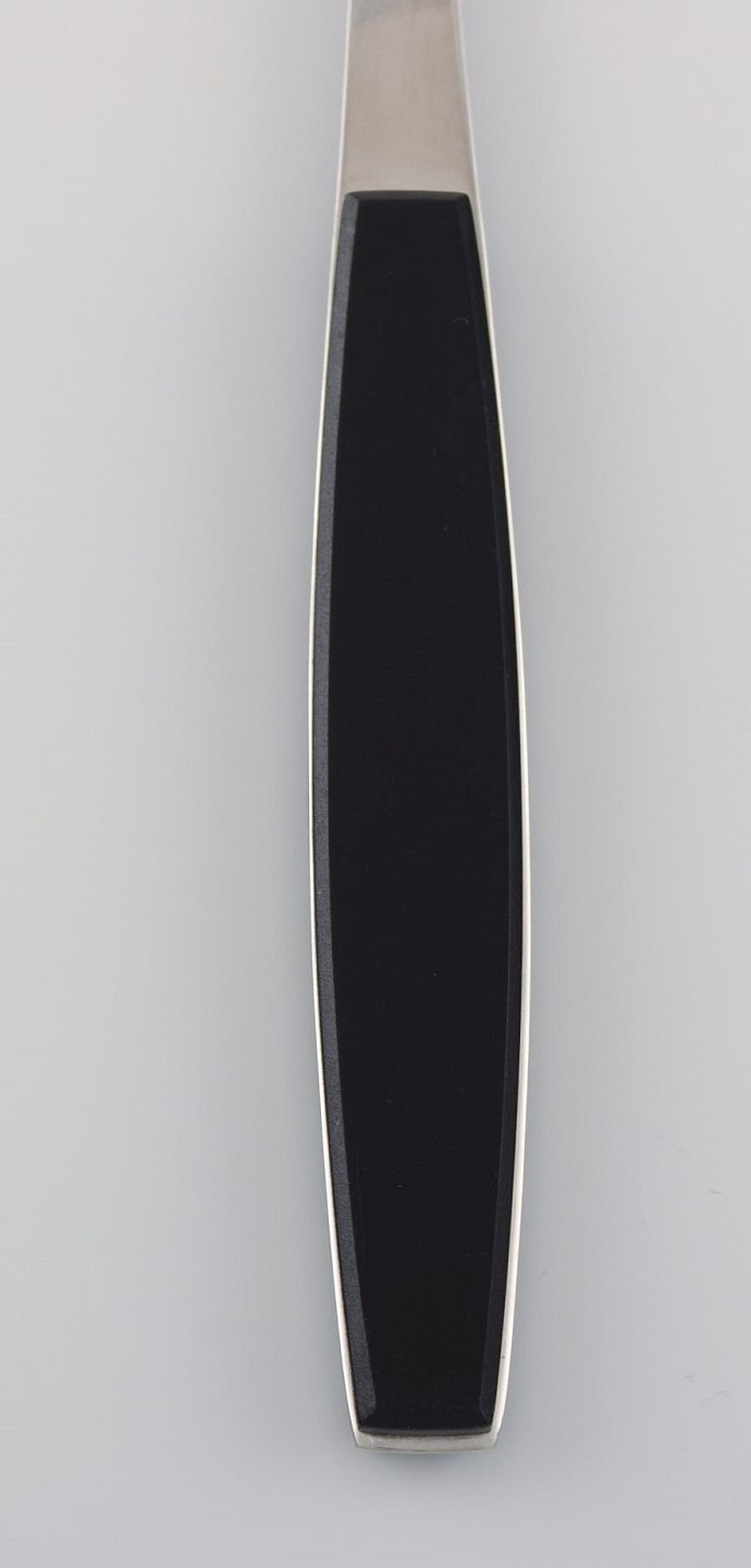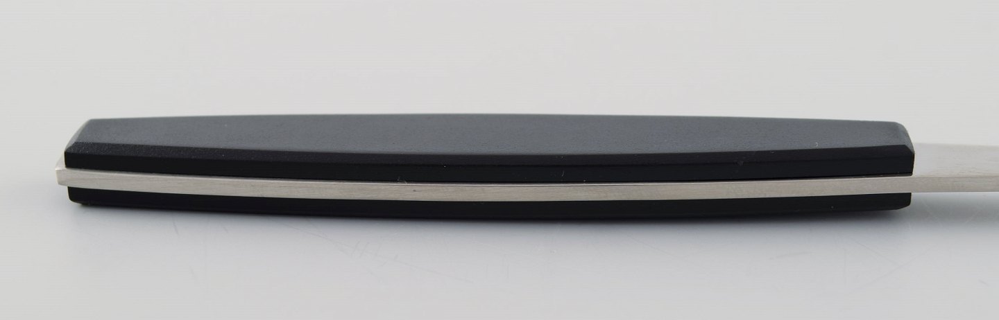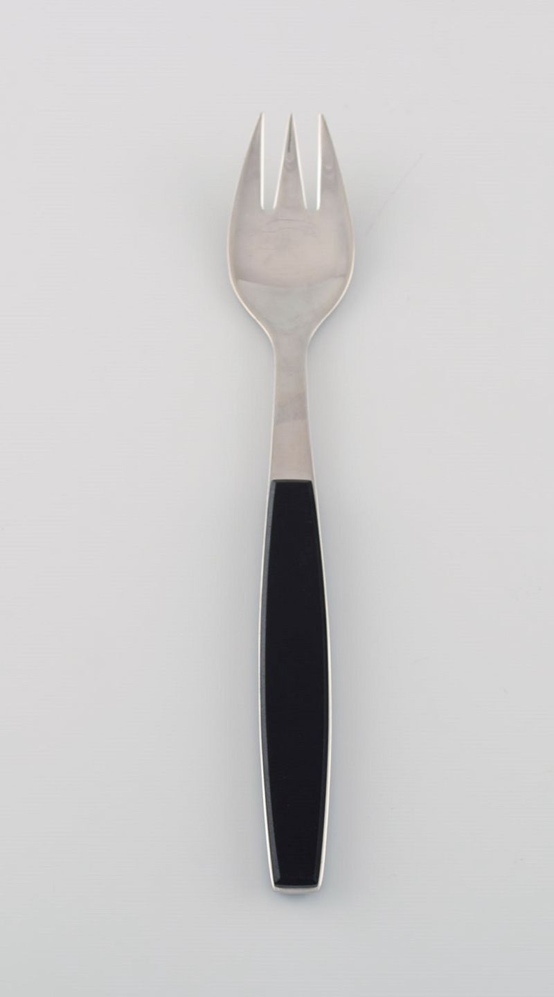 Henning Koppel for Georg Jensen. Strata frokostgaffel i rustfrit stål og sort plast. 1960/70'erne. 12 stk på lager.