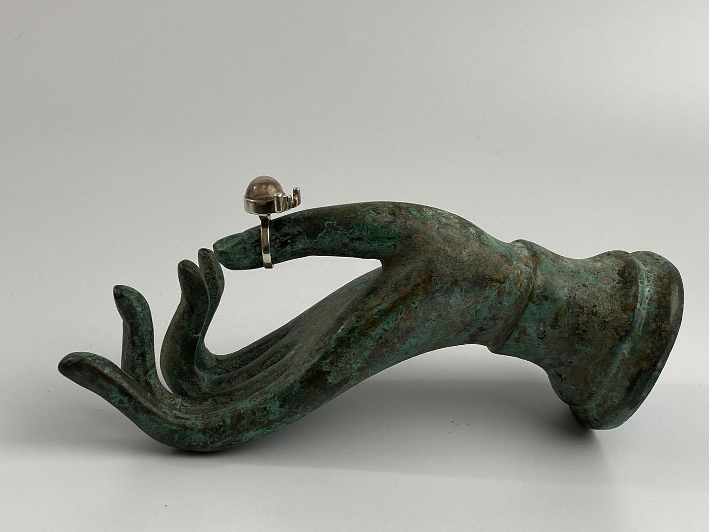 Kuppelformet modernistisk ring af John Rørvig, der har designet ringe til kongehuset. Ringen