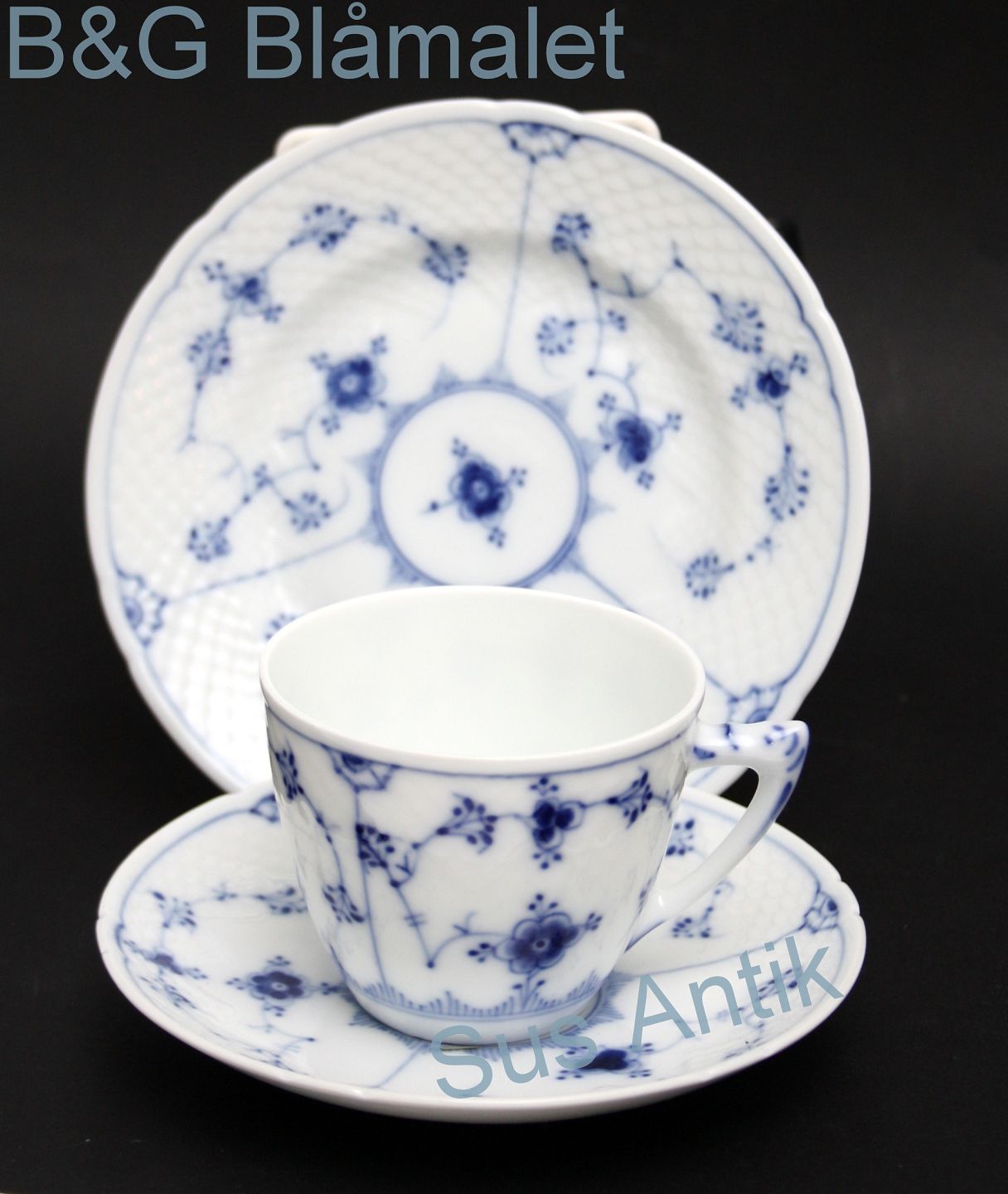 Text available in Danish: Kaffekop, kagetallerken Blåmalet (Musselmalet), Bing og Grøndahl