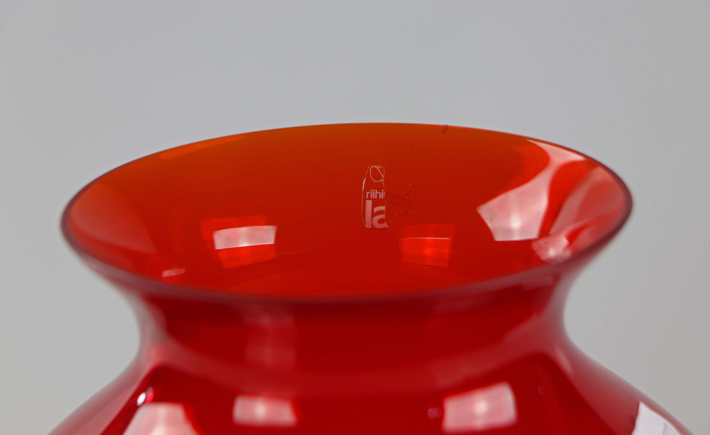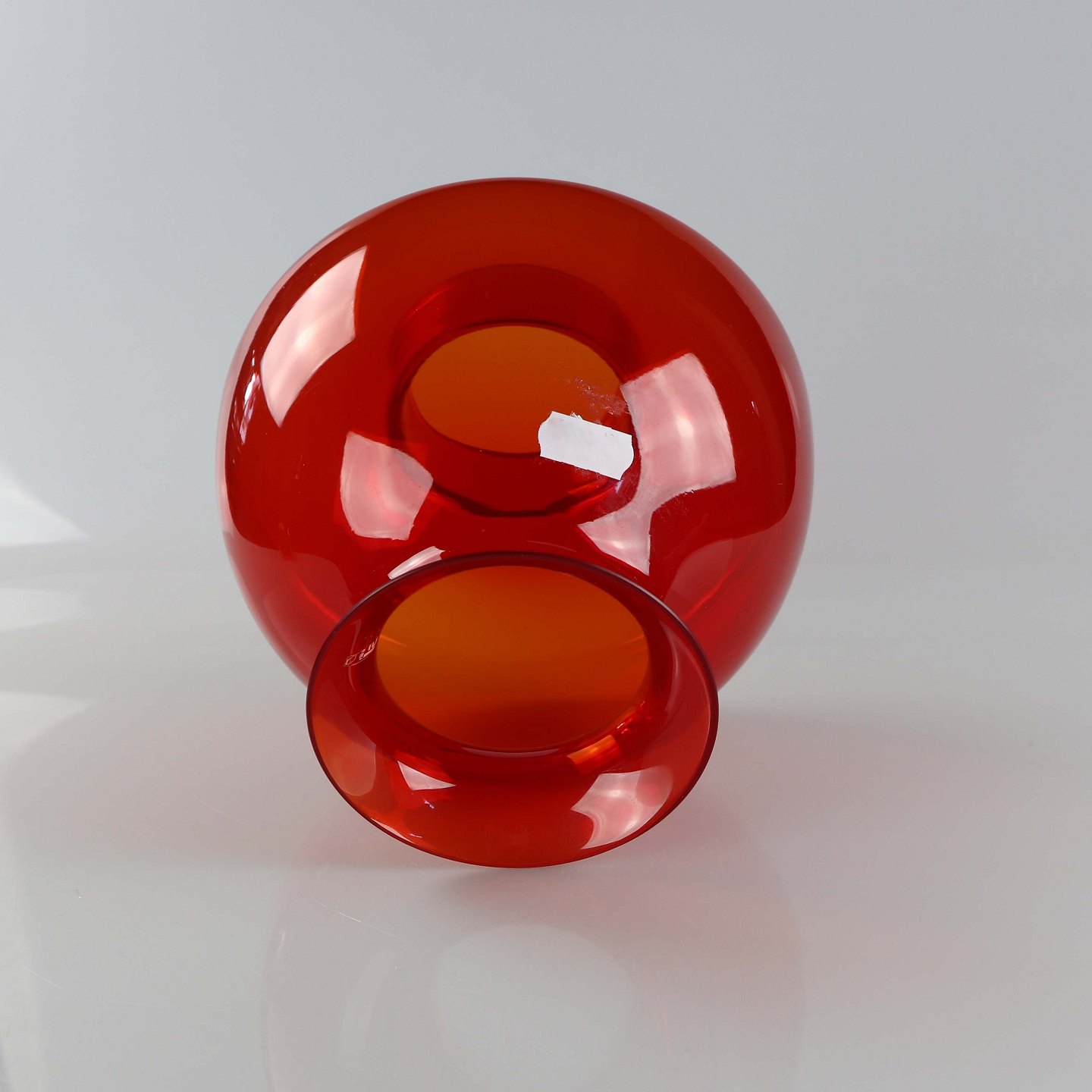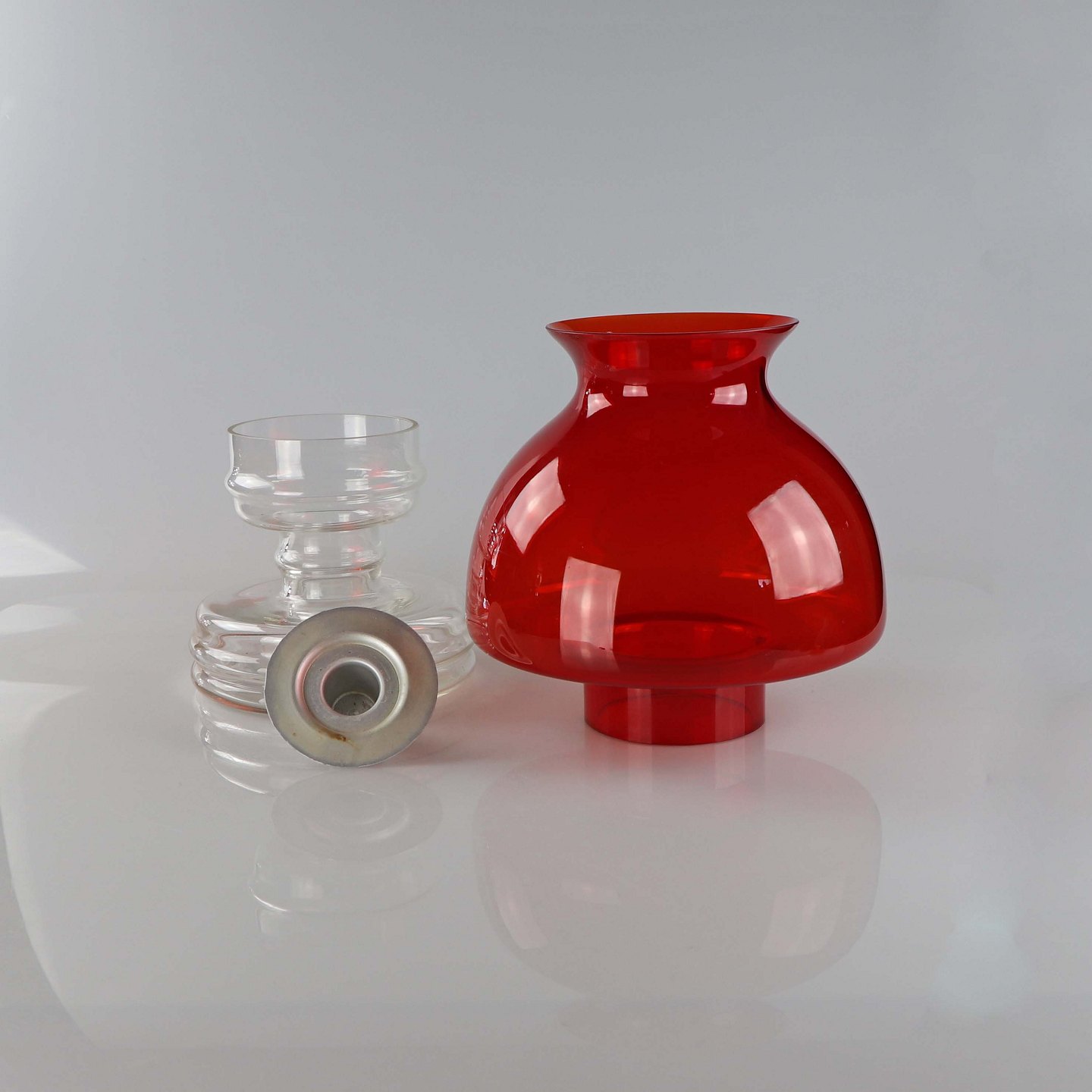 Finsk bordlampe i glas til stearinlys med rød glasskærm og klar glasbund