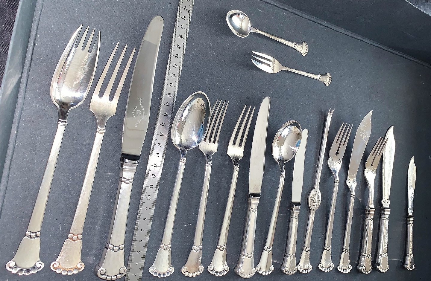 Kugle bestik i sølv.