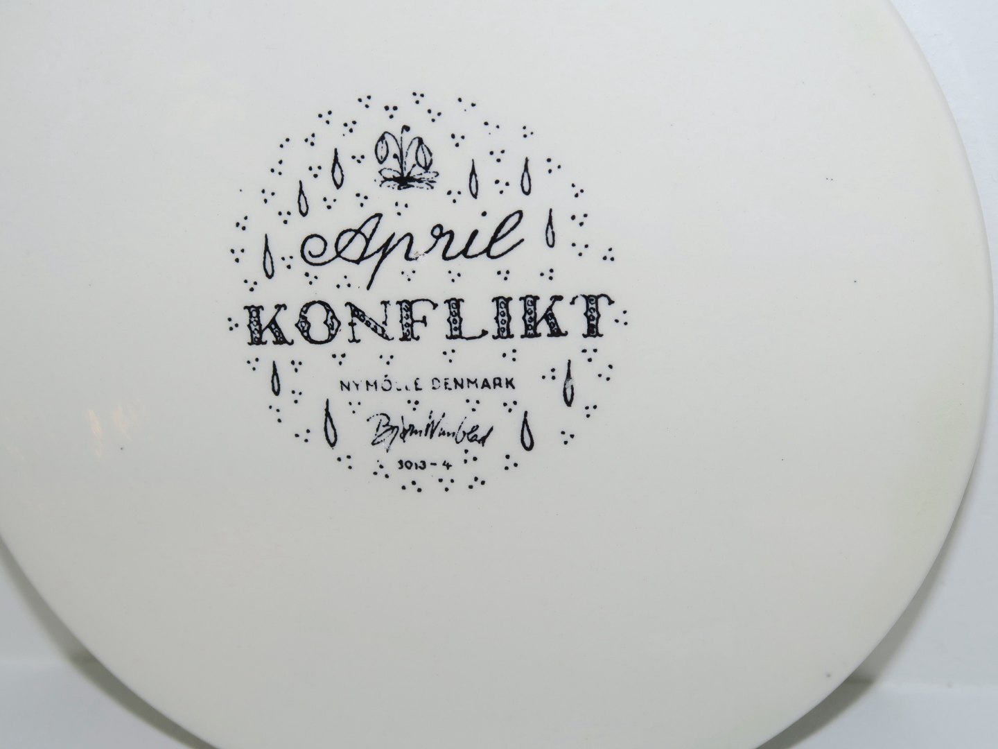 Månedsplatte / smørbrik med sort dekoration, April.