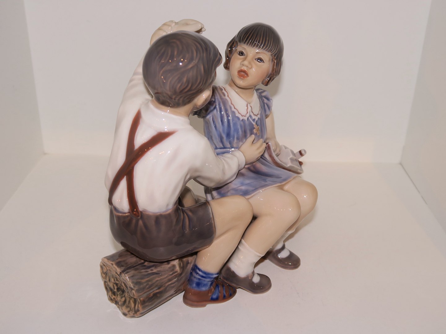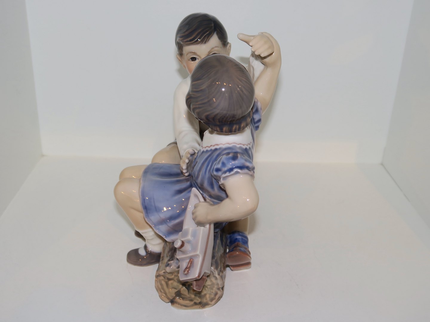 Dahl Jensen figur, pige og dreng med skib.