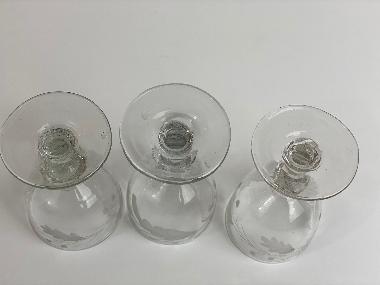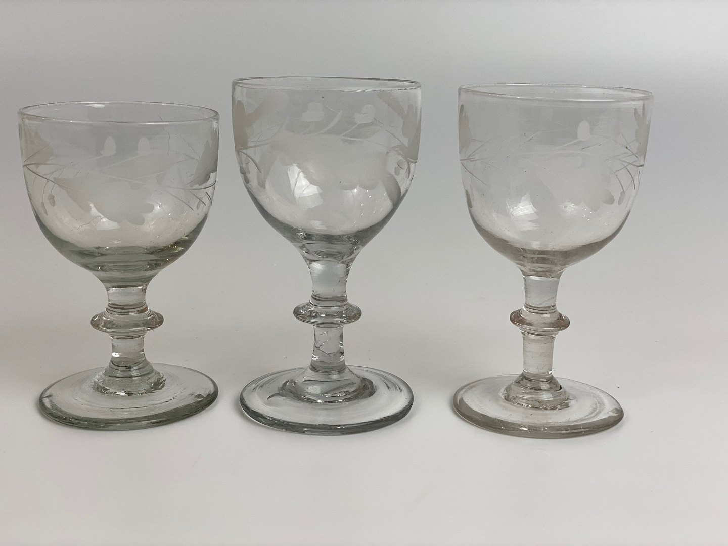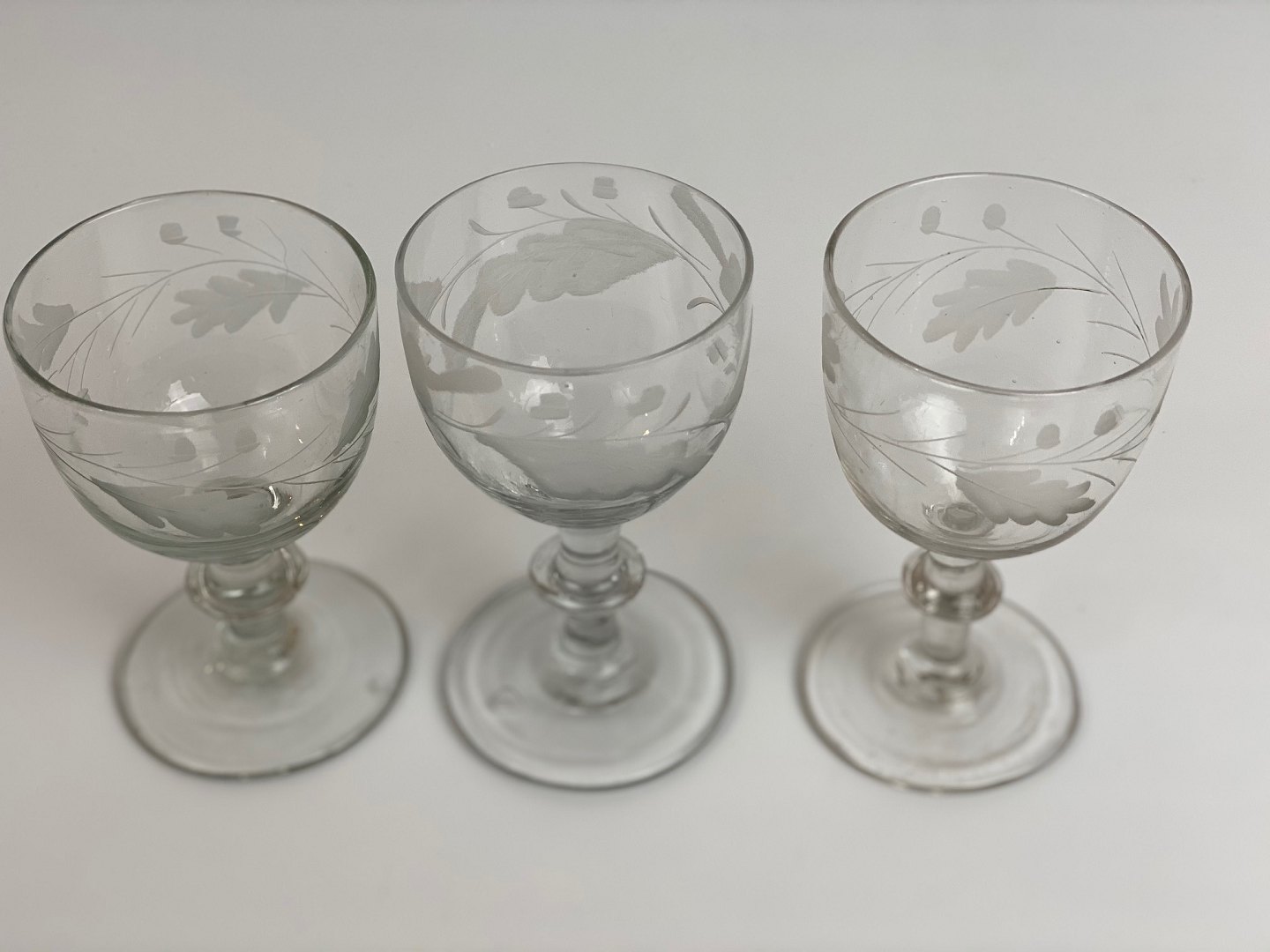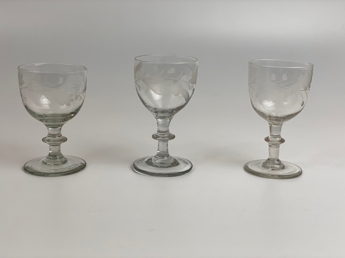 3 stk. smukke, gamle vinglas med egeløv fra Holmegaard glasværk. Prisen er per stk.