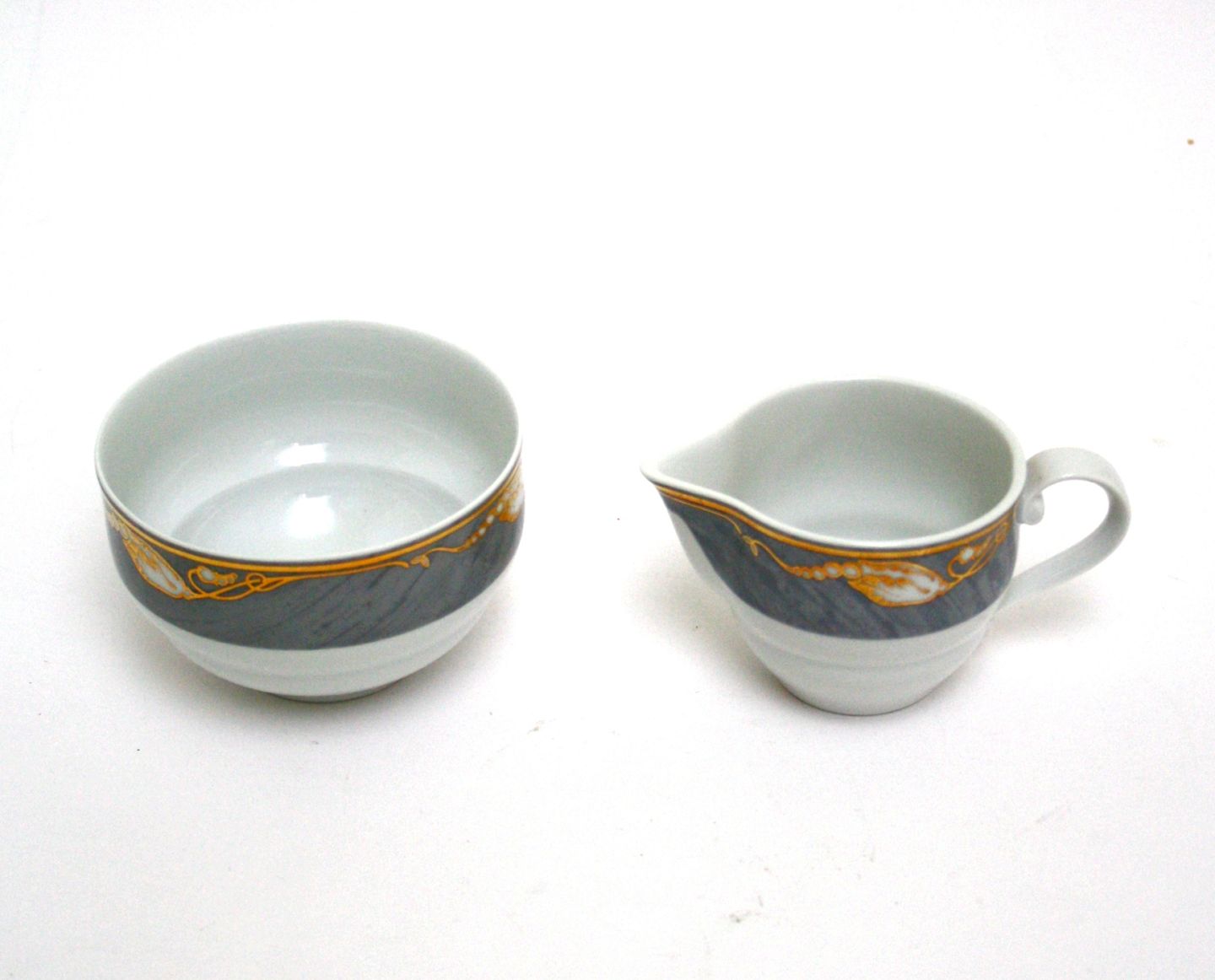 Flødekande nr. 394. Højde 6 cm. Længde 11 cm. Pris: 400 kr. for sættet. Lager: 1 sæt