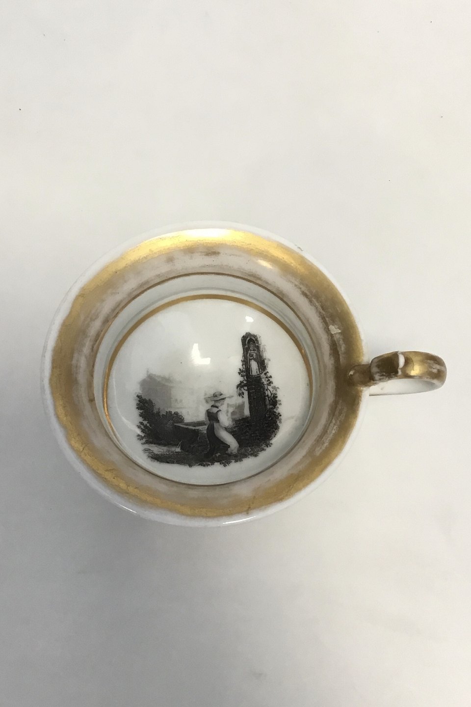 Sevres France, Gilt and Grisaille over glaze hand painted Mourning Cup. Chevron shaped ending of the handle. Tiny chip on the footrim. H: 7,5 cm (2 61/64").