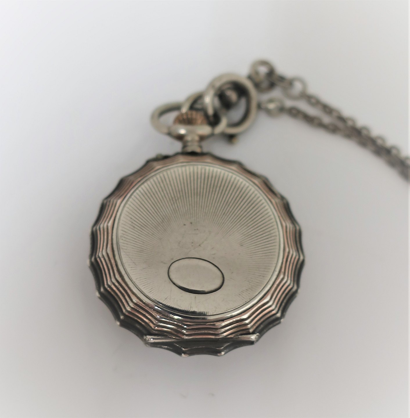 Sølv dame lommeur med kæde (800). Længden på kæden er 156 cm. Urværk fungerer.