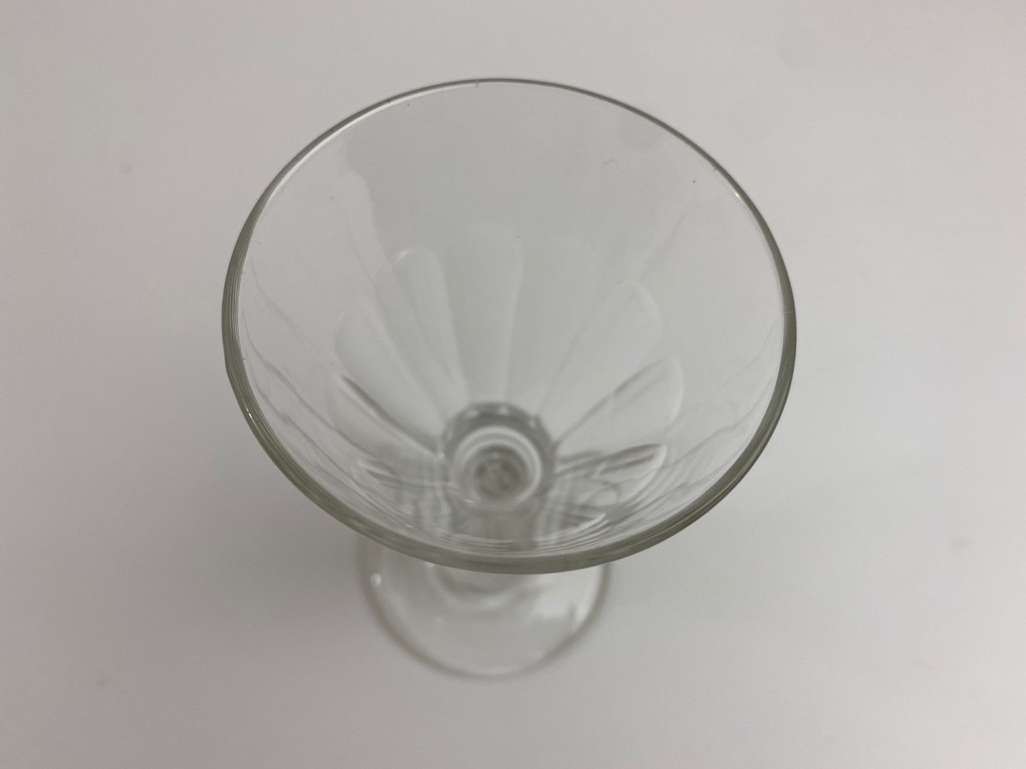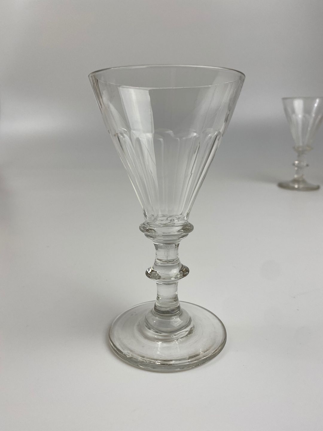 Smukke hvidvinsglas fra den første danske fulde serie af glas, som hedder Anglais. Anglais glas ses første gang i Holmegaards katalog i 1853 og produceres stadig på bestilling helt op til 1961.