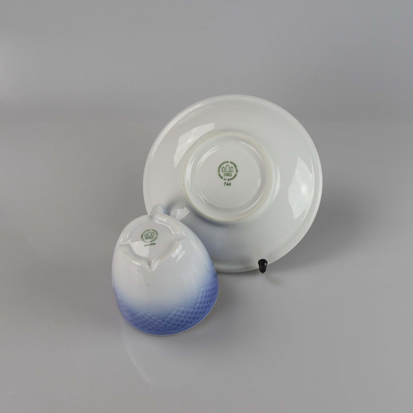Blå tone kaffekop med underkop nr. 744