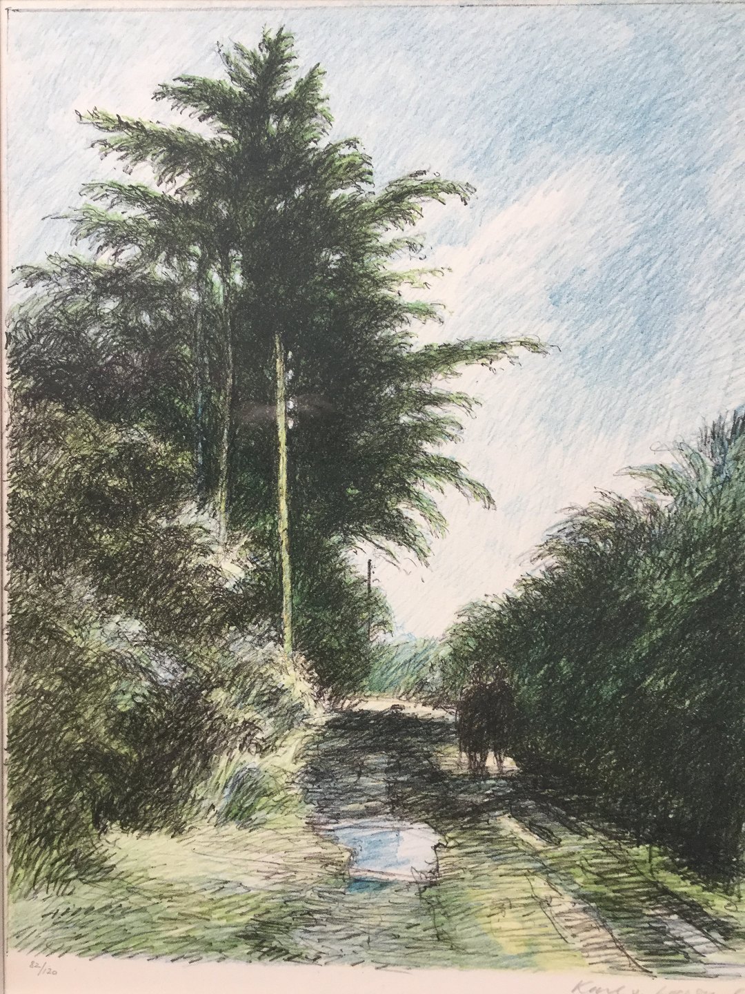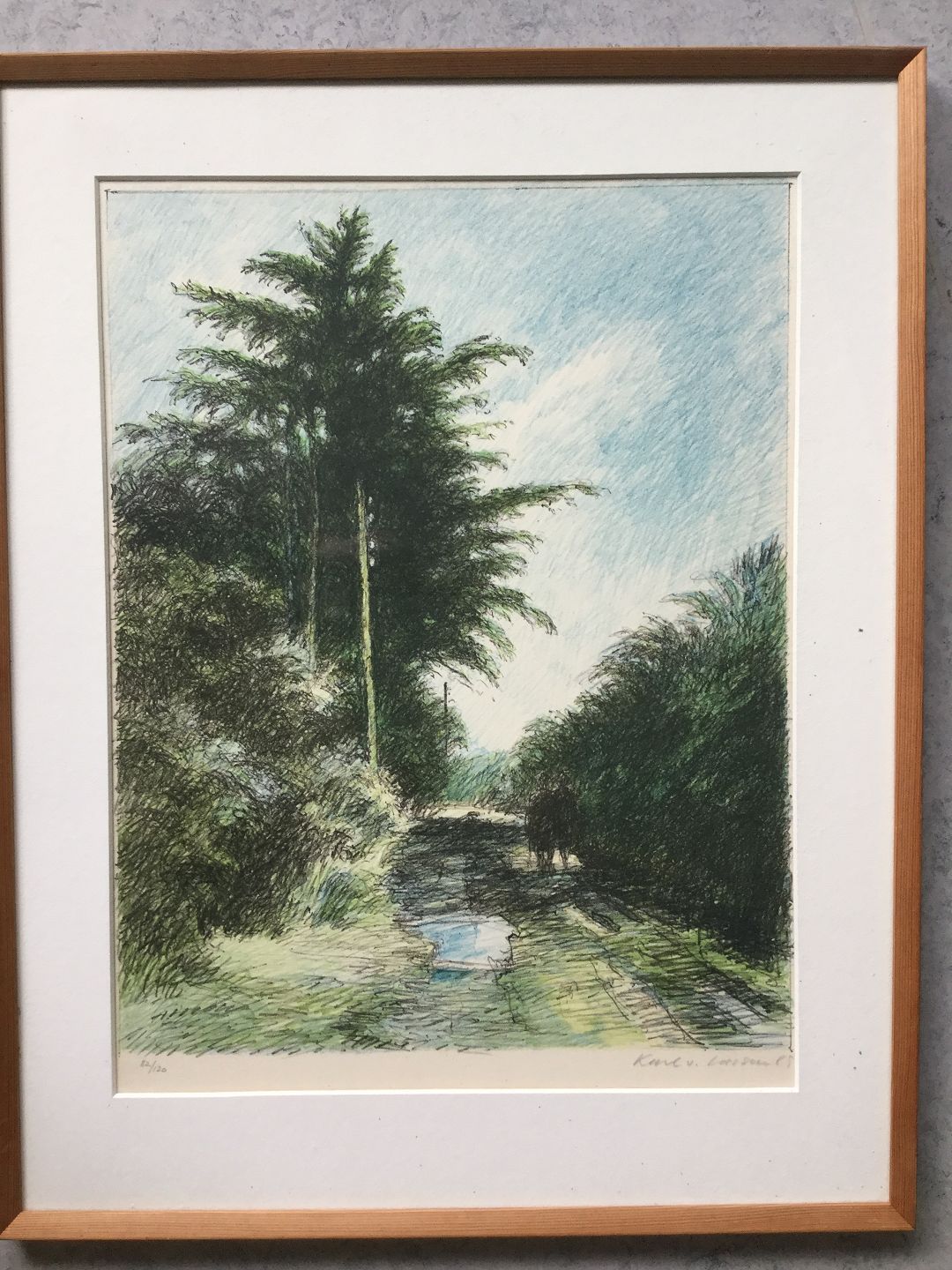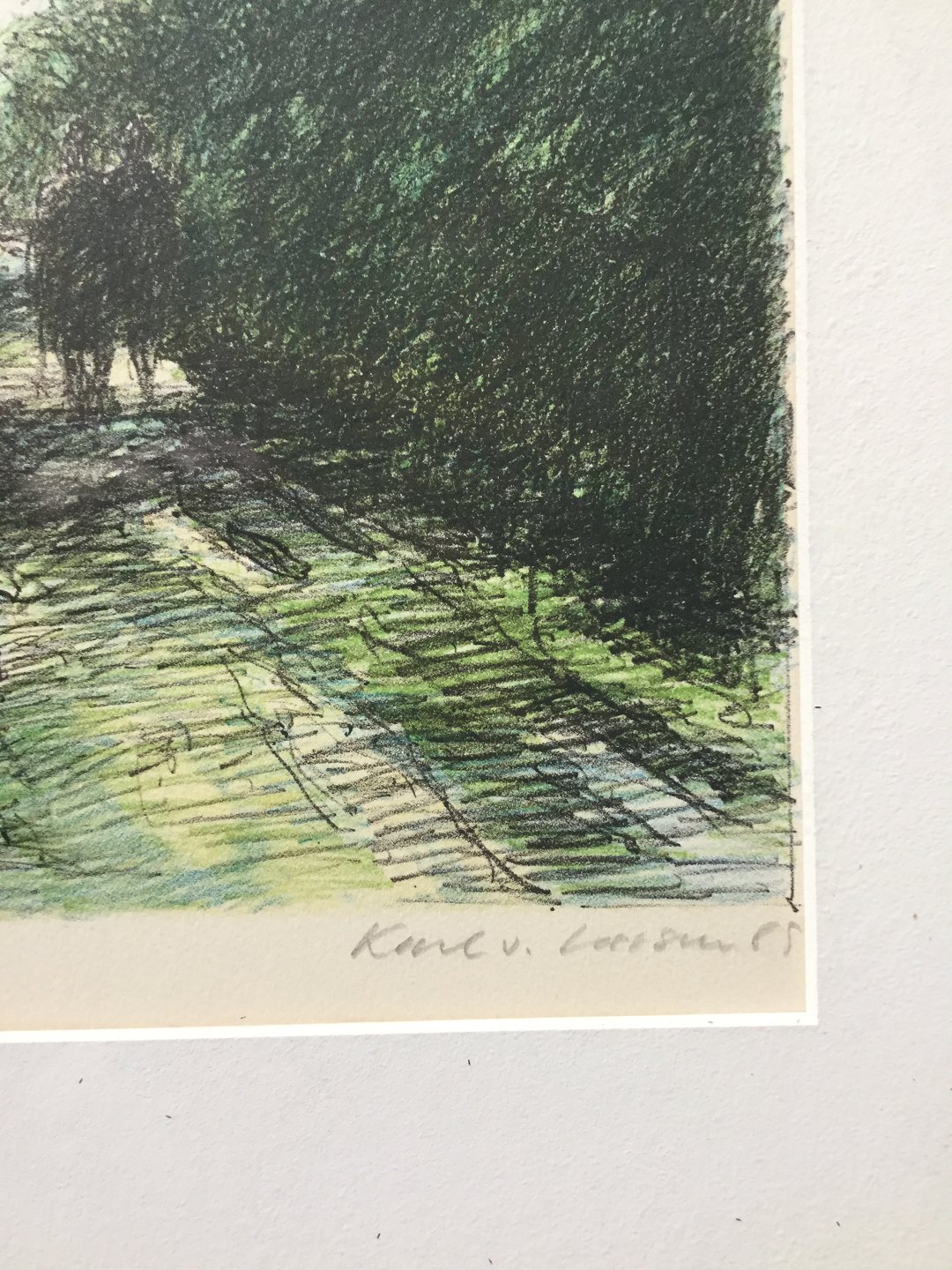 Litografi af Karl V. Larsen 1985 - Skovparti.