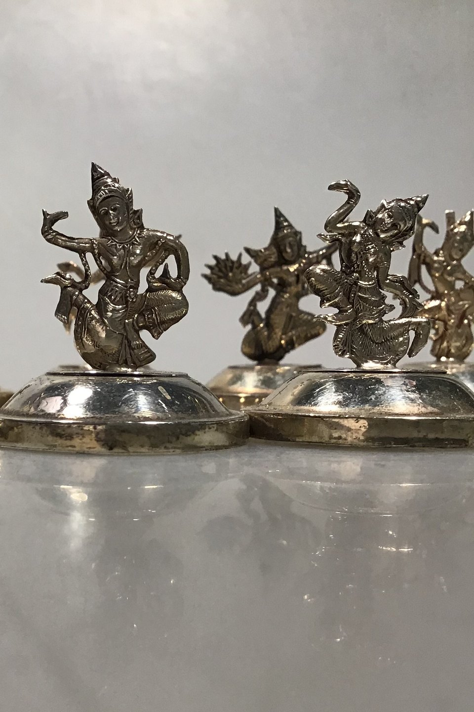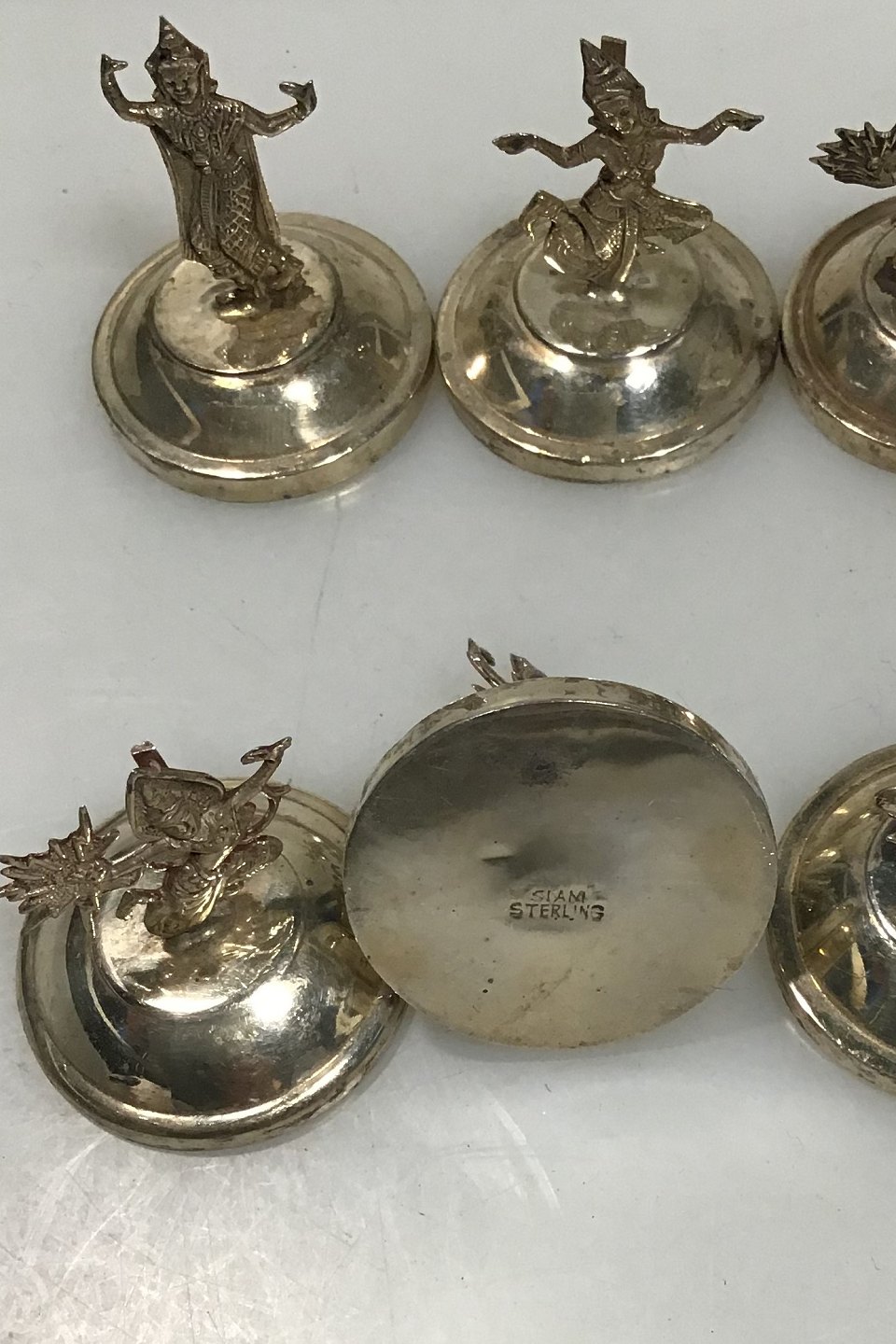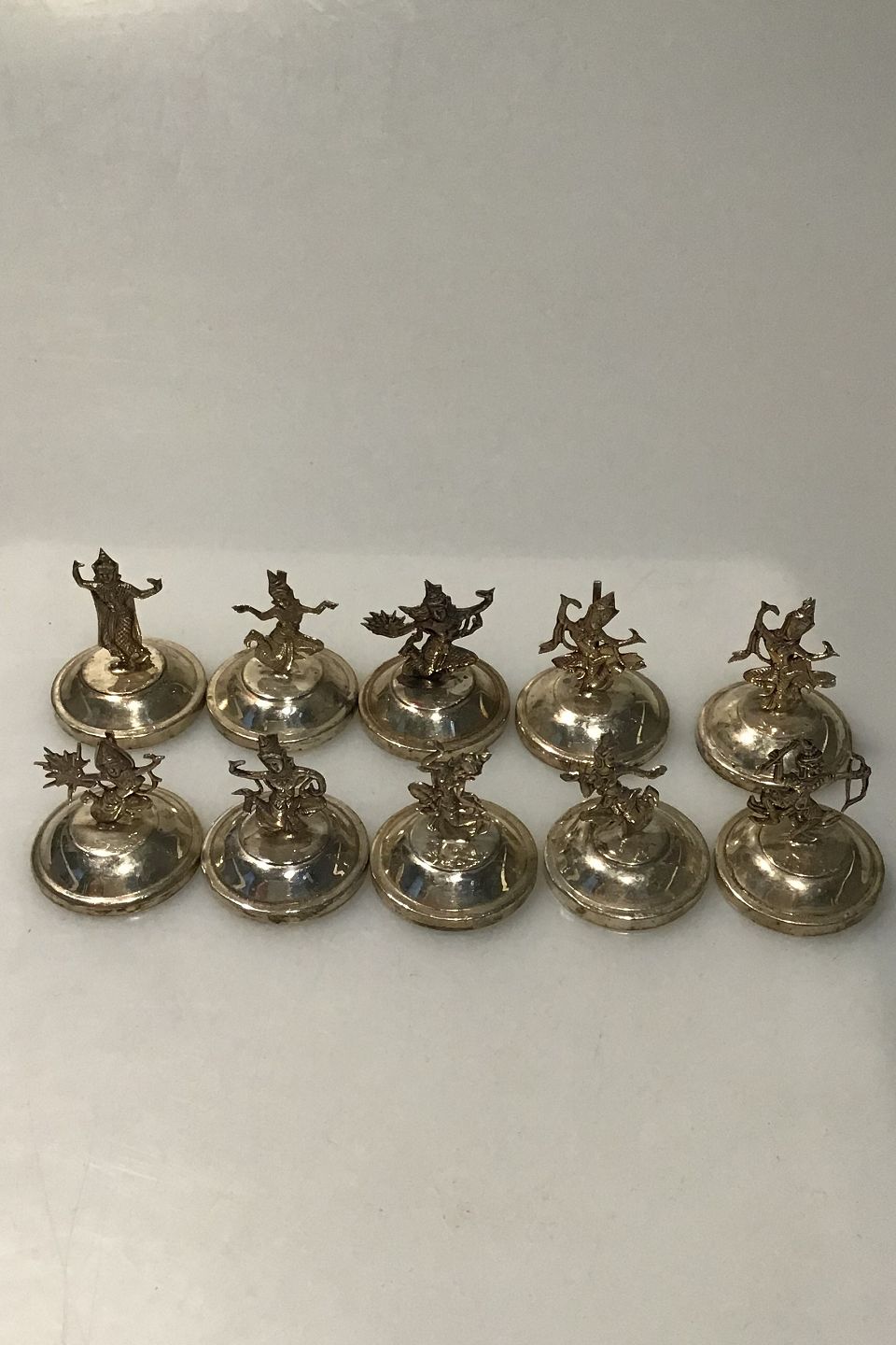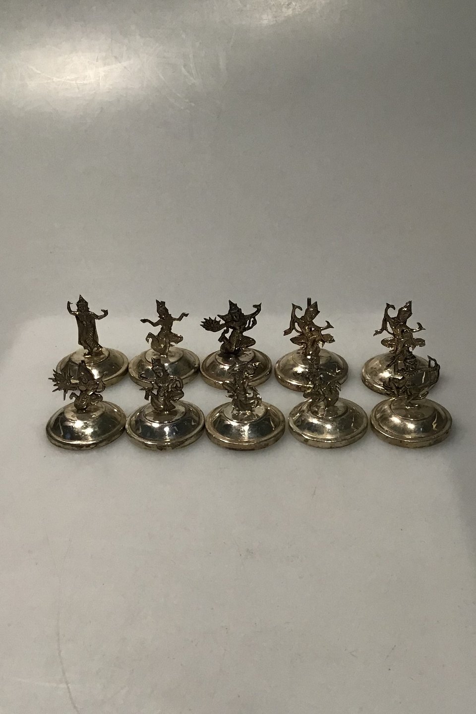 Bordkortholdere Sterling Silver Sæt 10 Stk. Thailand(Siam) Forskellige tempeldanserinder Ca 3.5 cm
