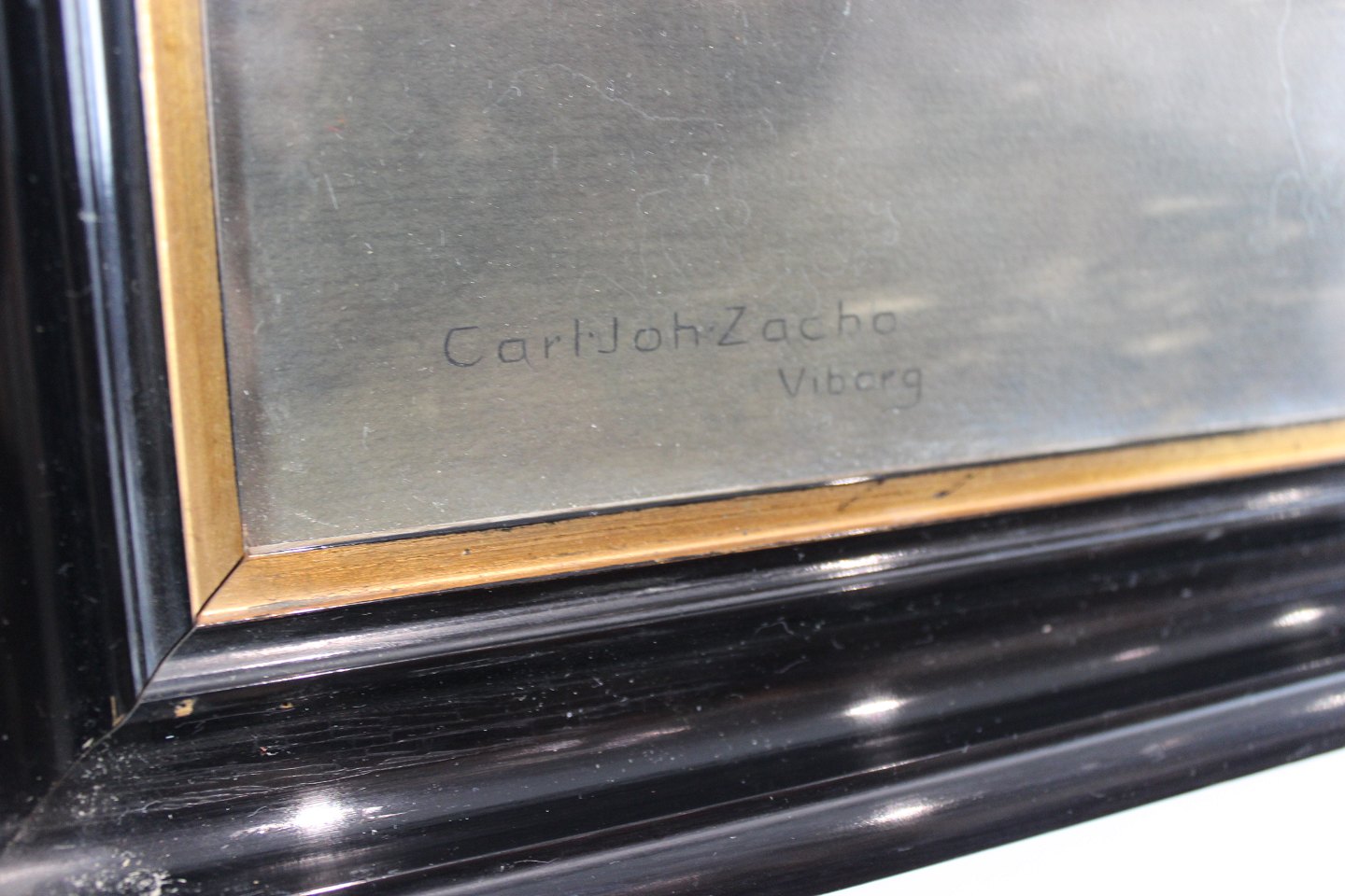 Tryk af gammelt bindingsværkshus signeret Carl Johzacho, Viborg.