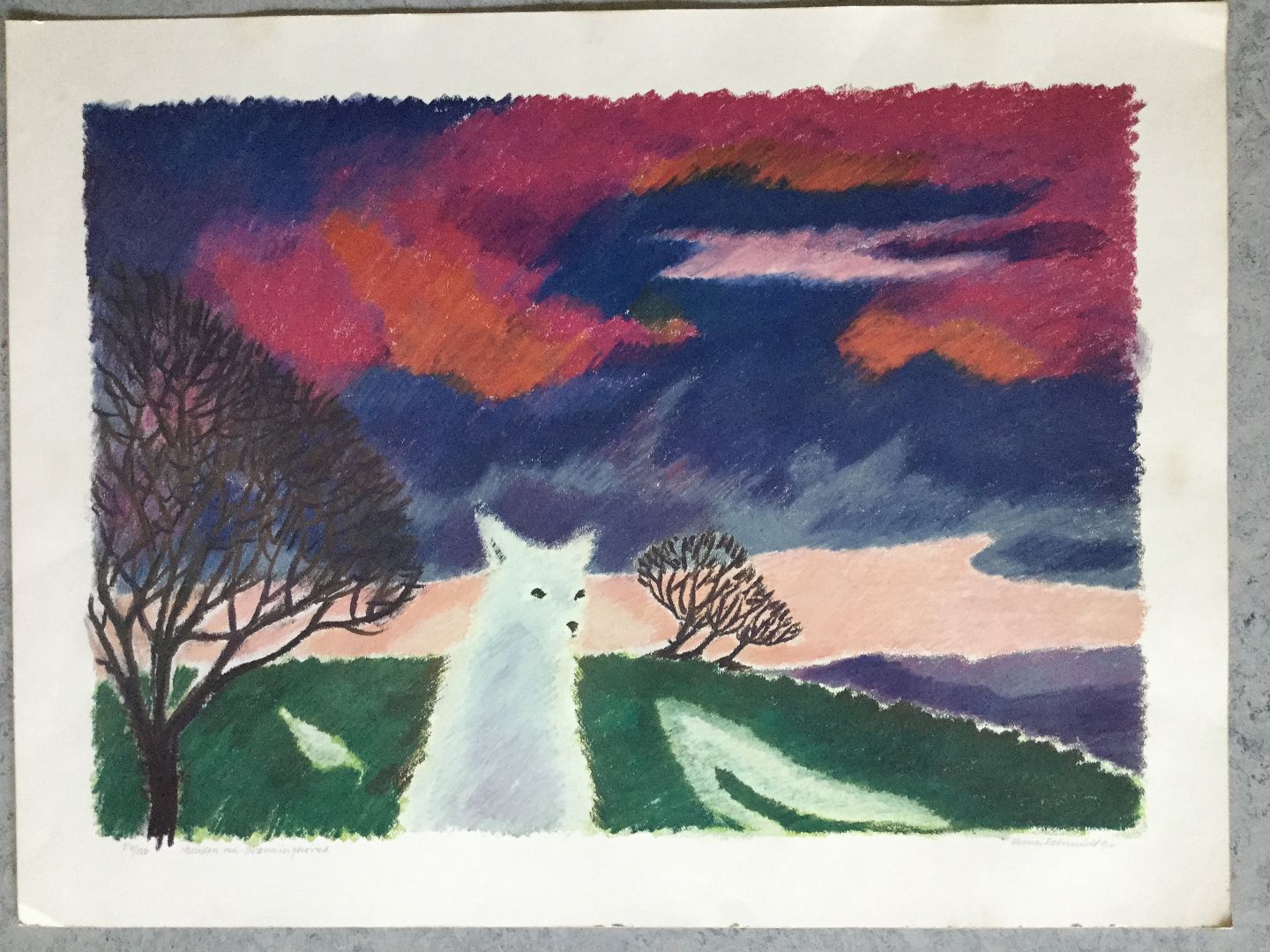 Farvelitografi af Verner Schmidt 1990 - "Hunden ved Grønninghoved"