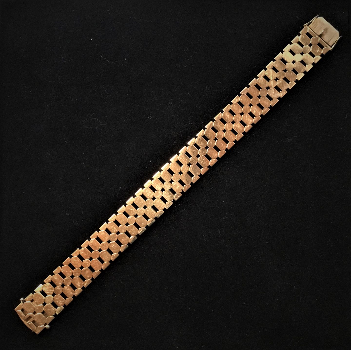 Armbånd Cubemønster, 14 karat, L 18 cm, B 15 mm