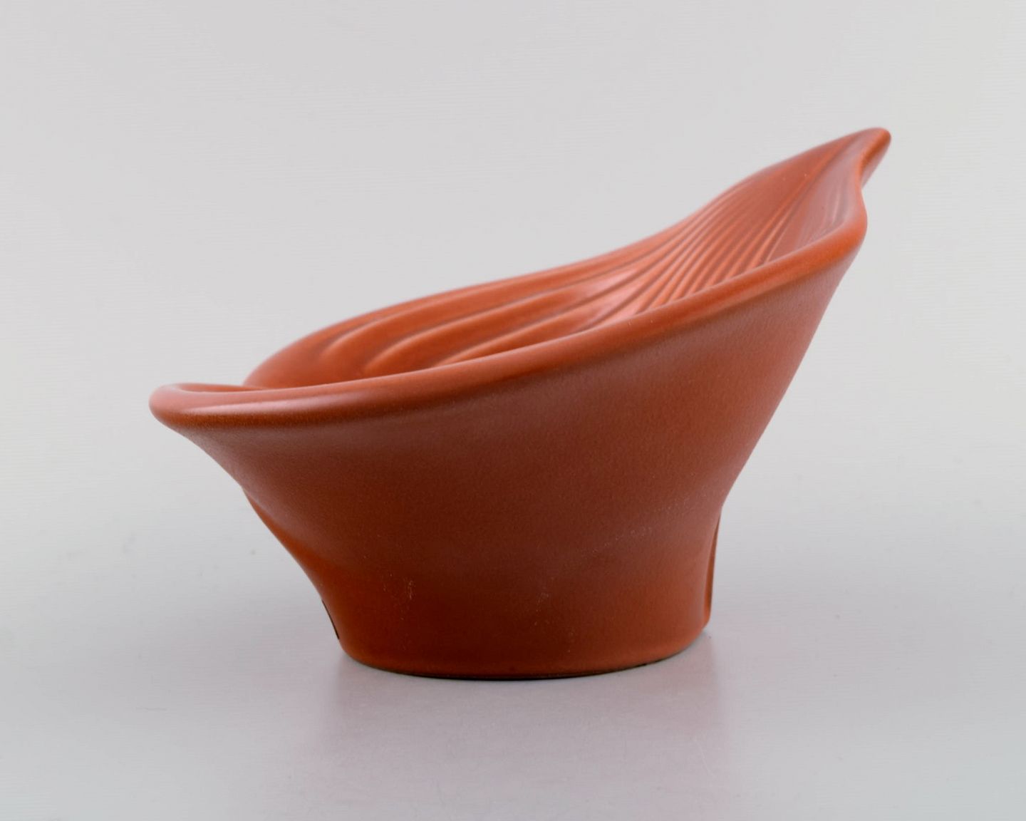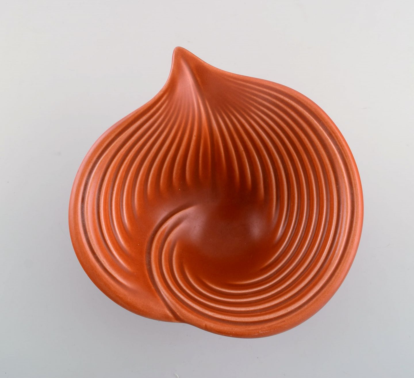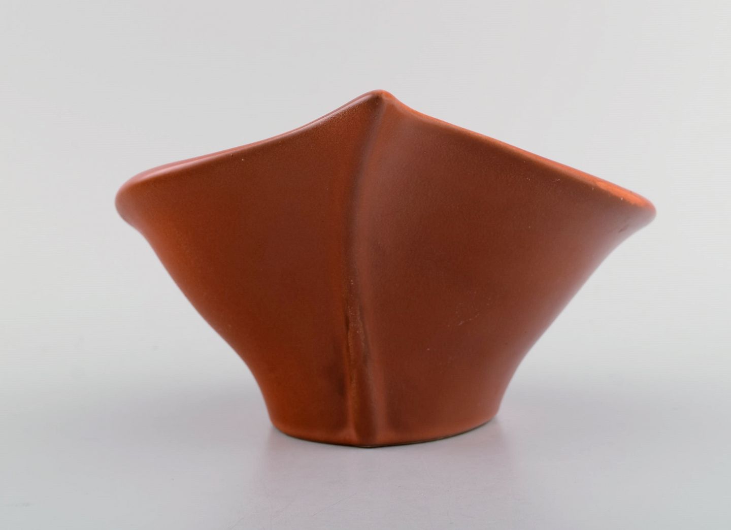 Jie, Sverige. Retro skål i glaseret keramik. Smuk glasur i mørke orange toner. 1980'erne.
