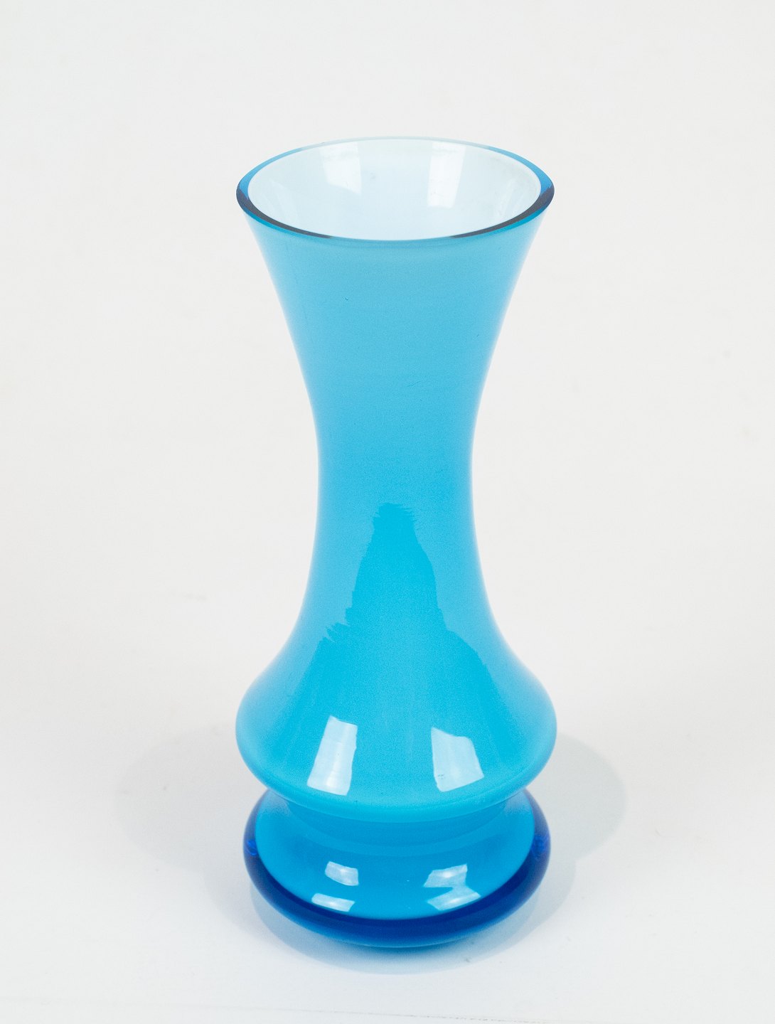 Blue glass vase with white opaline glass on the inside by Holmegaard.