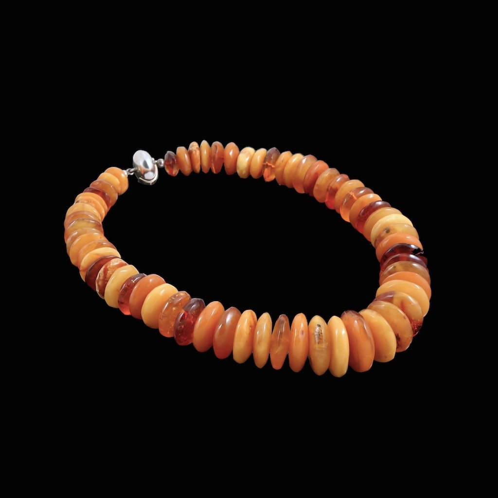 Kirsten Pontoppidan. Danish Amber Necklace with silver/gold Ball Clasp.