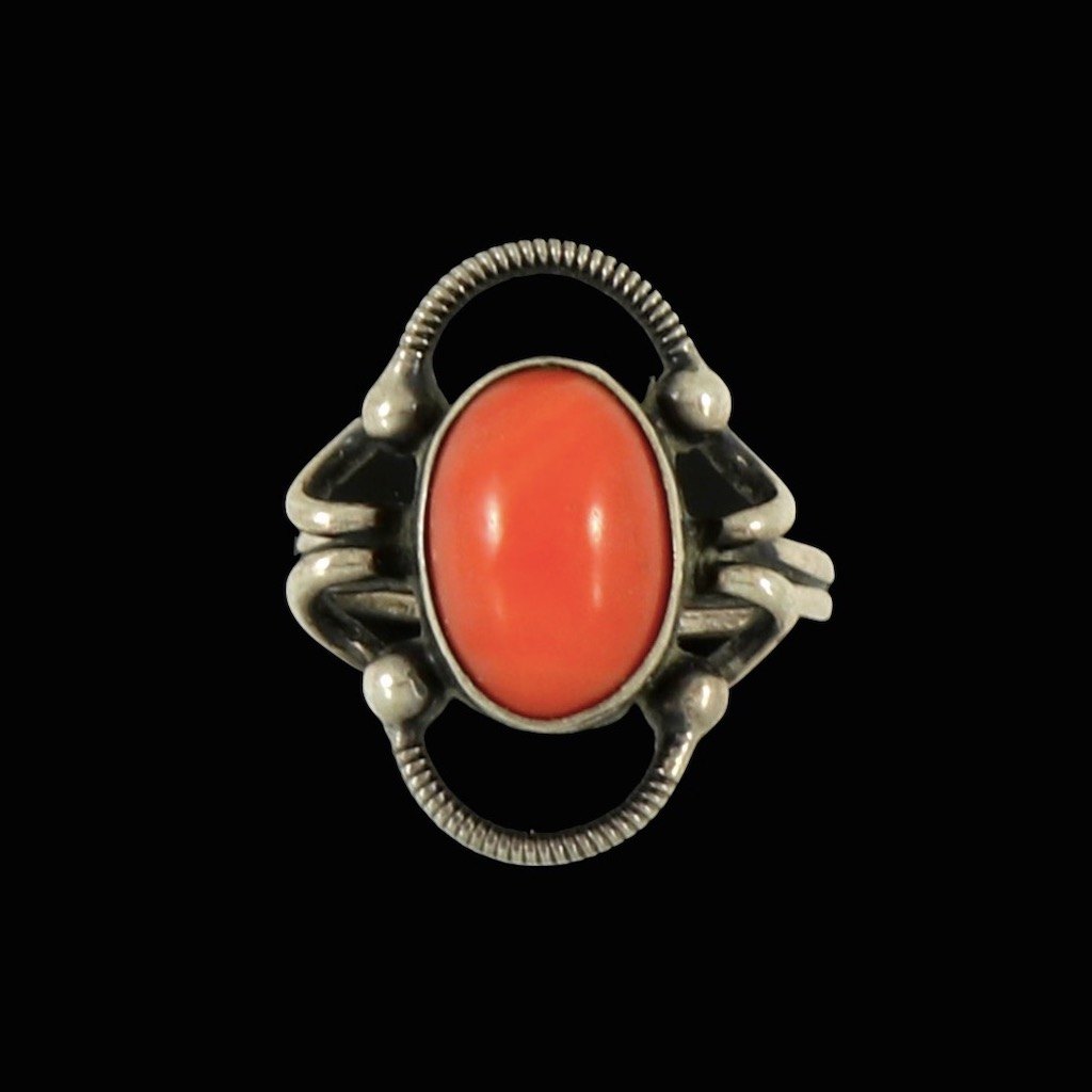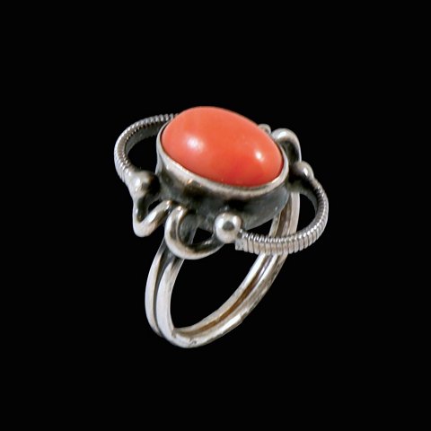 Bodil Hendel Rossenhoff. Skønvirke ring i sølv med koral.