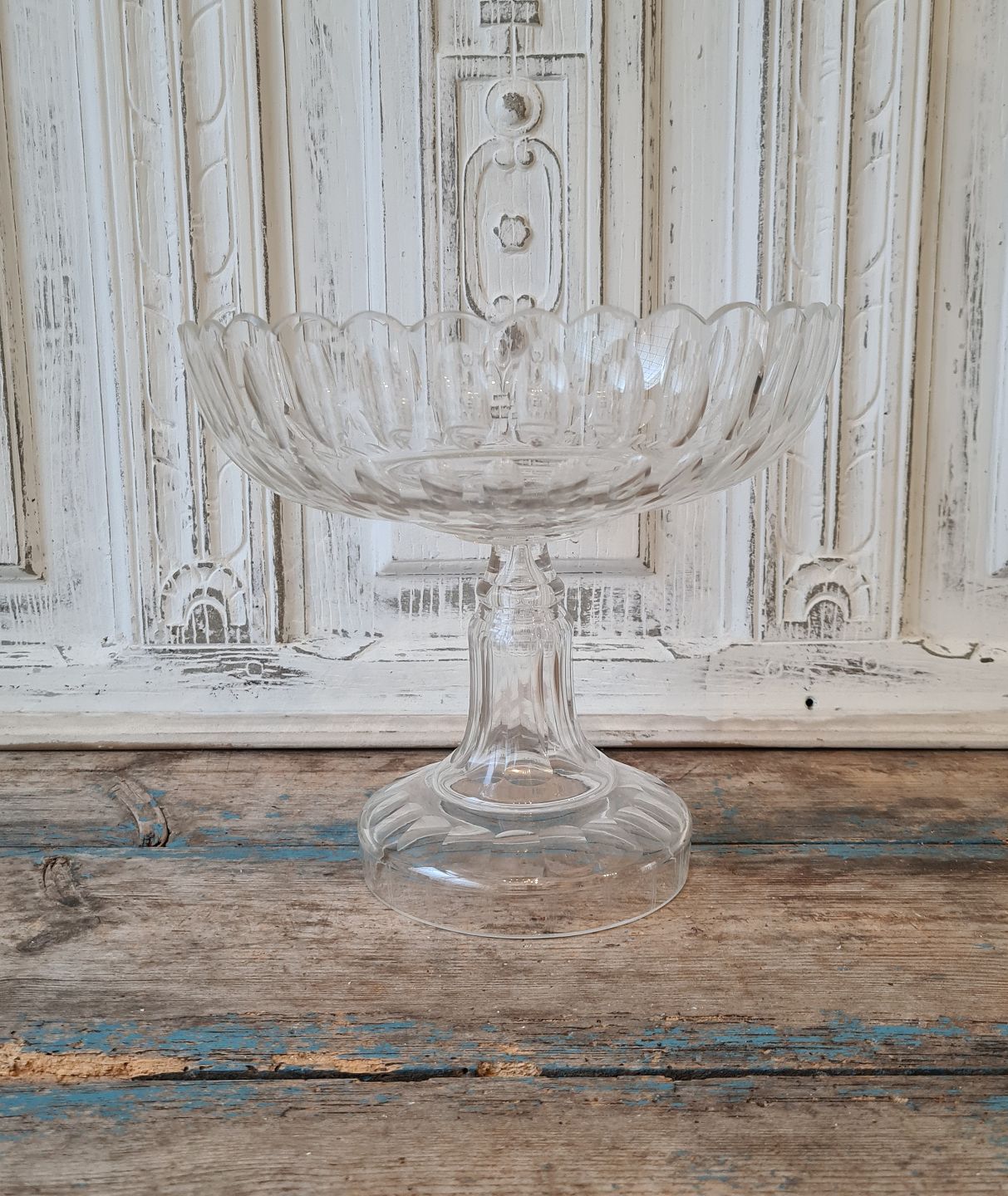 Stor smuk glas opsats med fine olivenslibninger 23,5 cm.