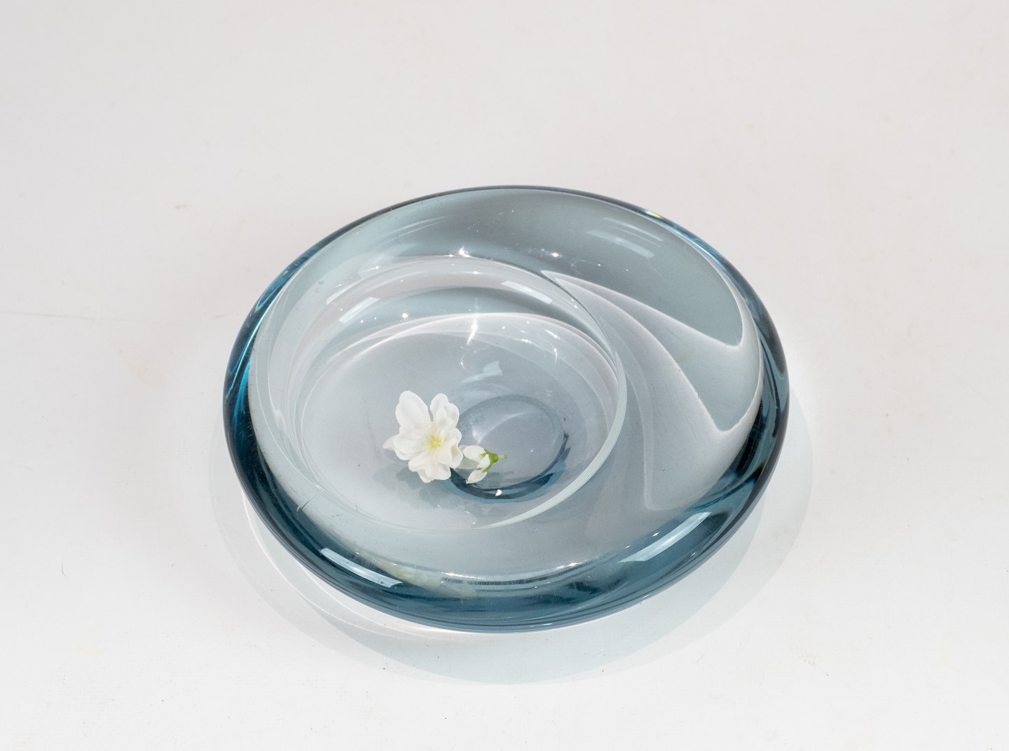 Lyseblå glas skål af Per Lütken for Holmegaard.