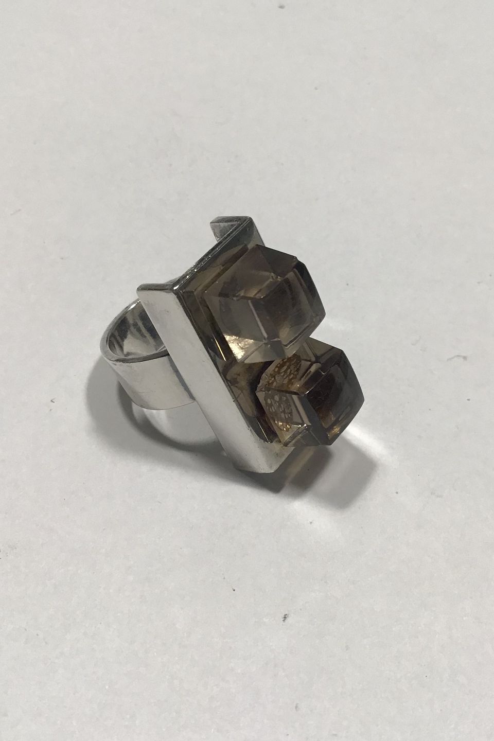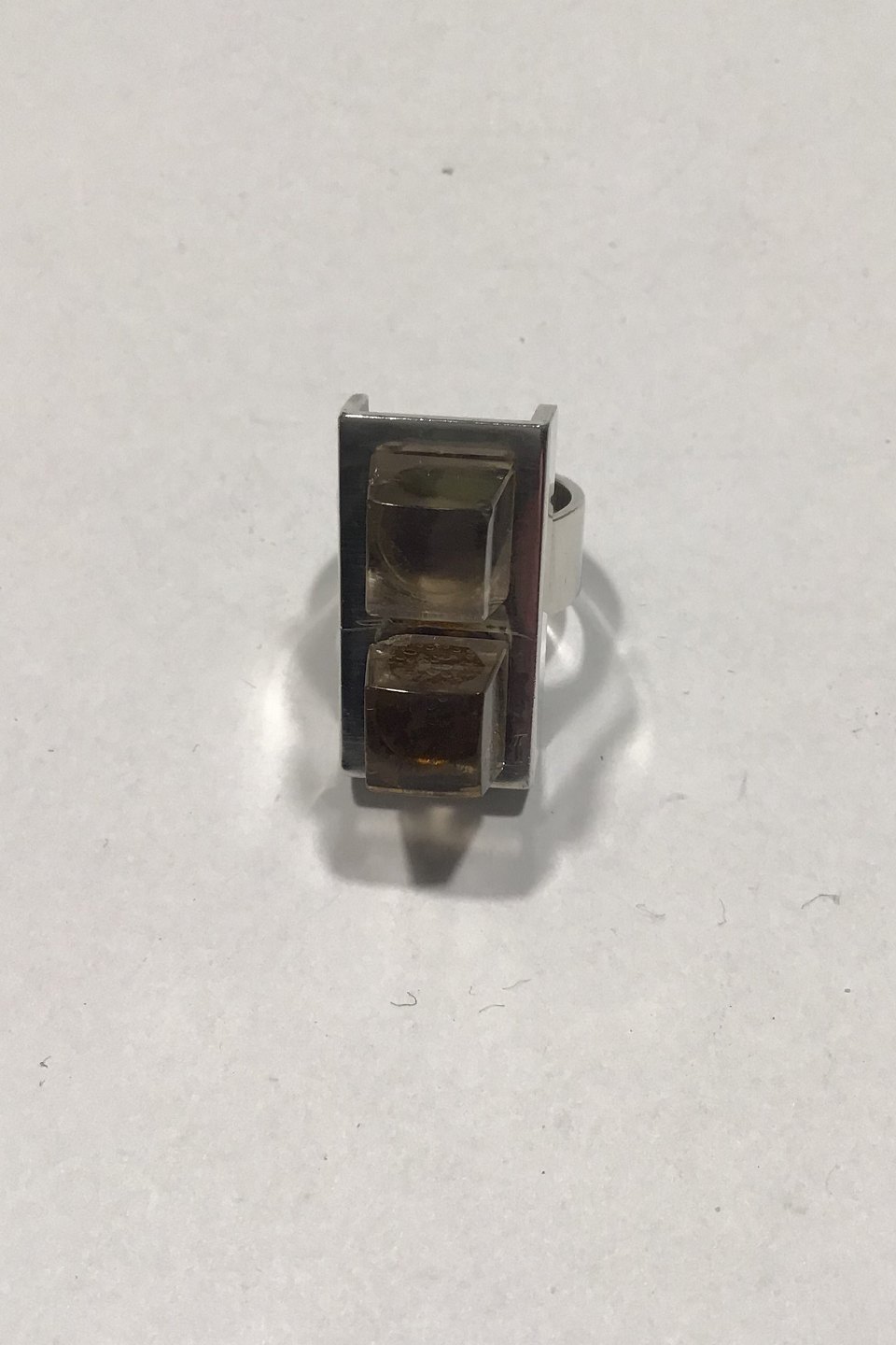 Hans Hansen Sterling Sølv Ring m/ 2 Røgfarvede sten
