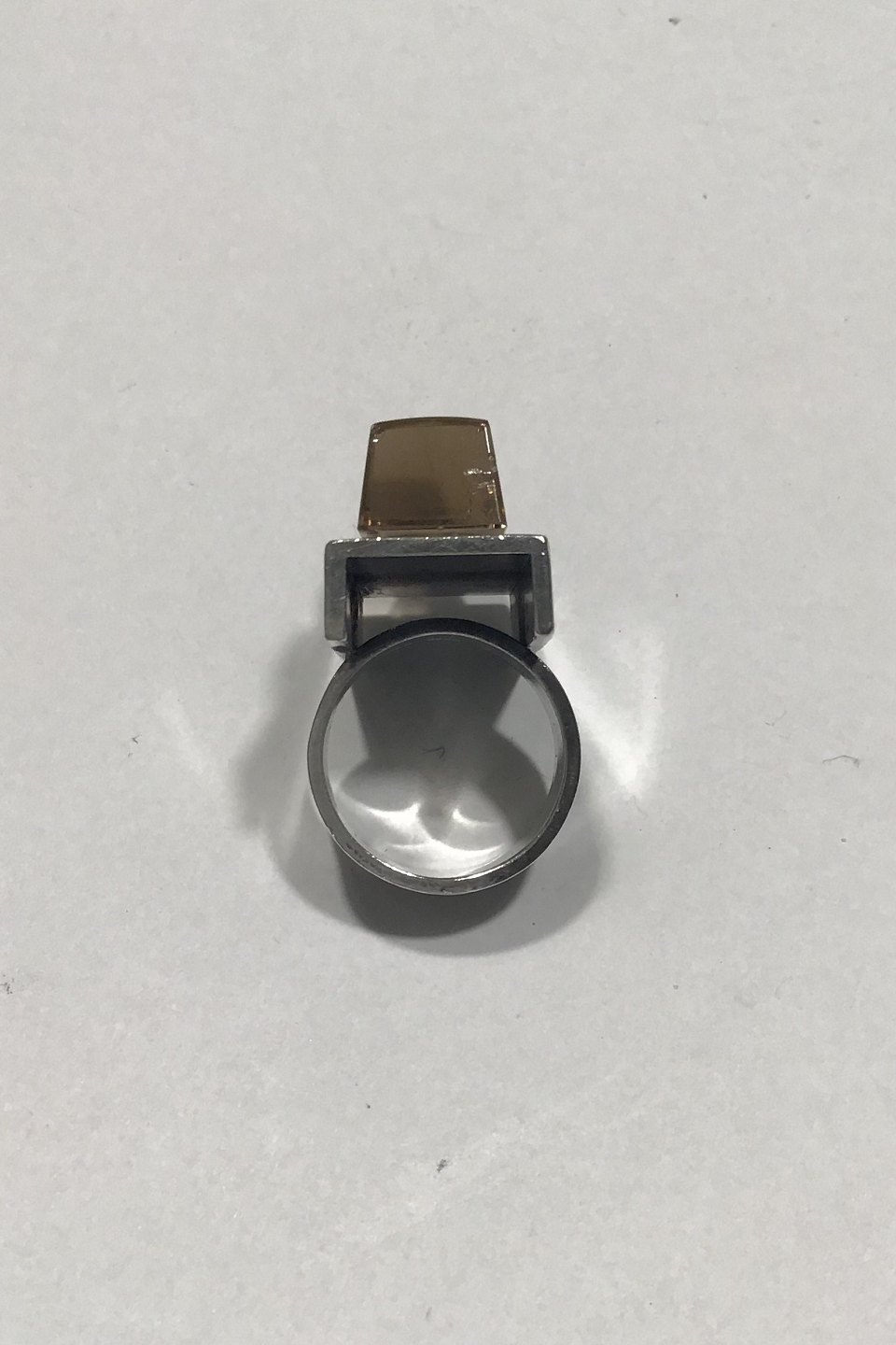 Hans Hansen Sterling Sølv m/ 2 Røgfarvede sten Ring Str 53 Måler 2.8 cm x 1.5 cm x 1.5 cm(Små afslag)