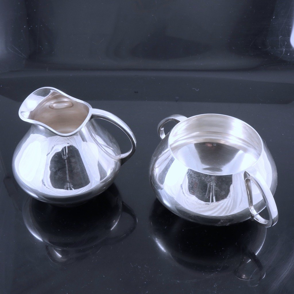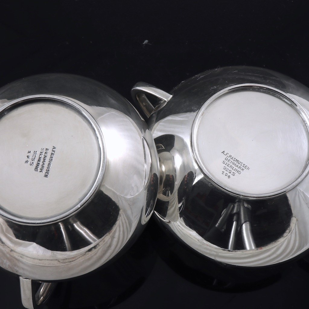 Anton F. Rasmussen. Flødekande og sukkerskål i sterling sølv #104.