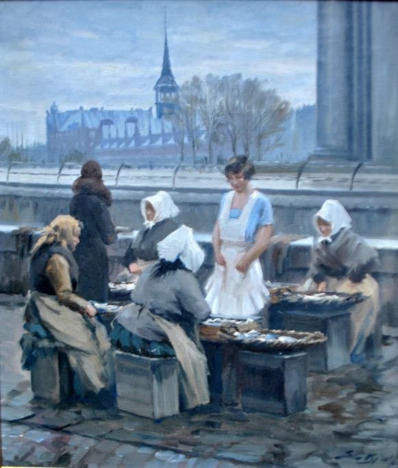 Bjulf, Søren Christian (1890 - 1958) Danmark: Fiske konerne på Gammel Strand, København.