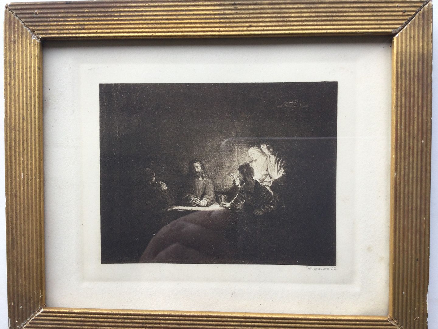 Efter maleri af Rembrandt van Rijn's værksted 1648. Maleriet er ophængt på Statens Museum for Kunst i København og i mange åre troede man det var en ægte Rembrandt.