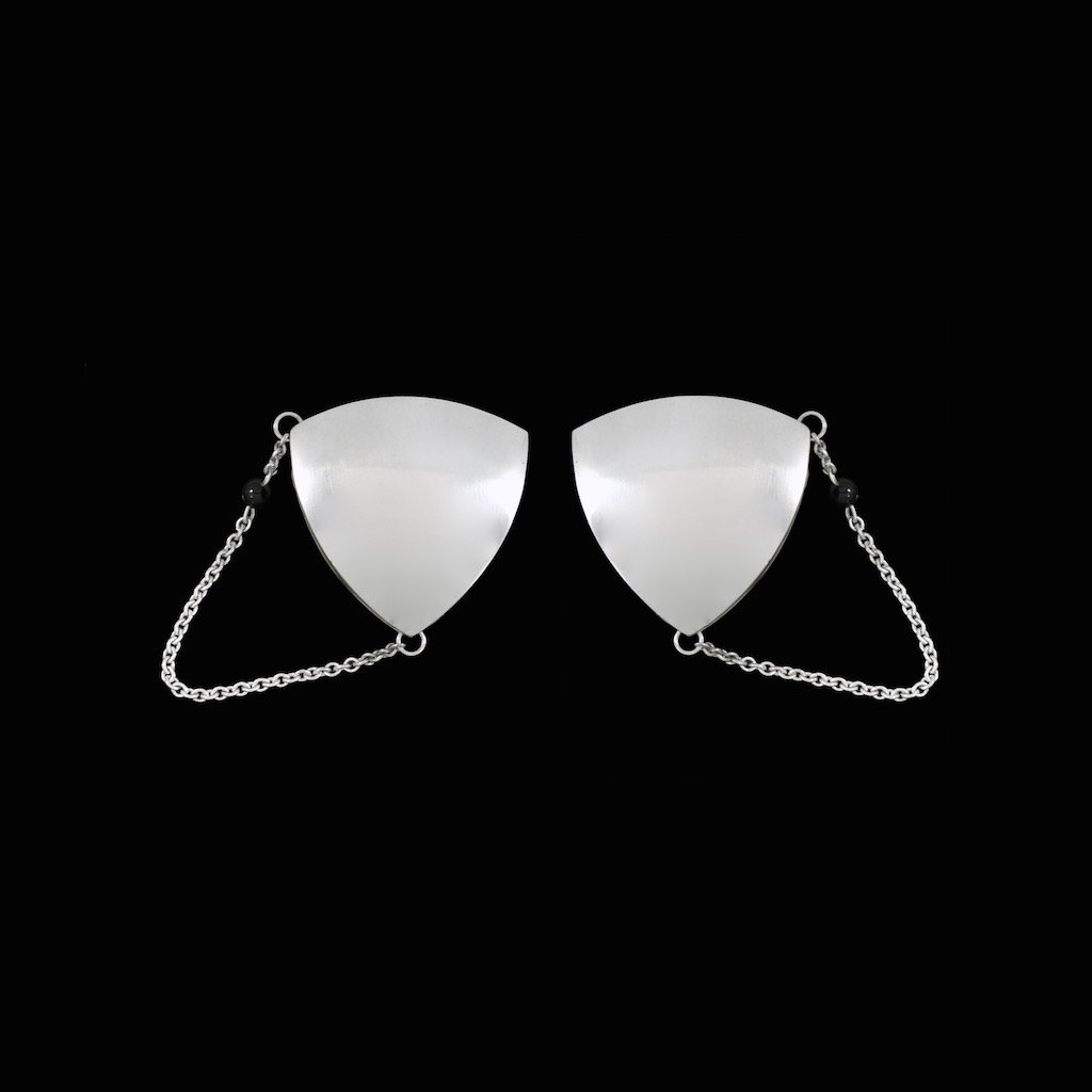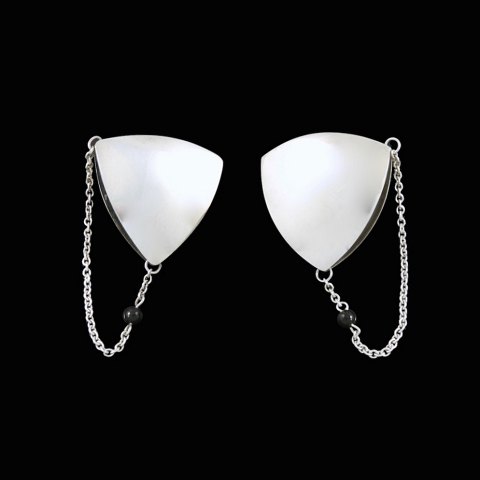 Georg Jensen. Sterling Silver Ear Clips with Chain & Onyx #203B - Regitze Overgaard
