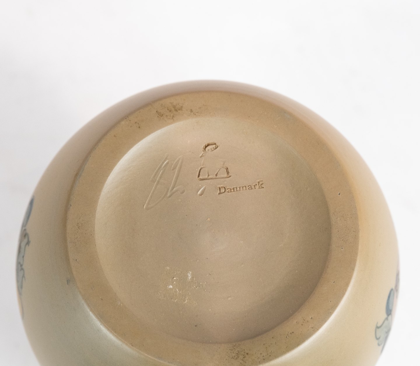 Keramik vase i brune farver, nr.: 82 af L. Hjort.