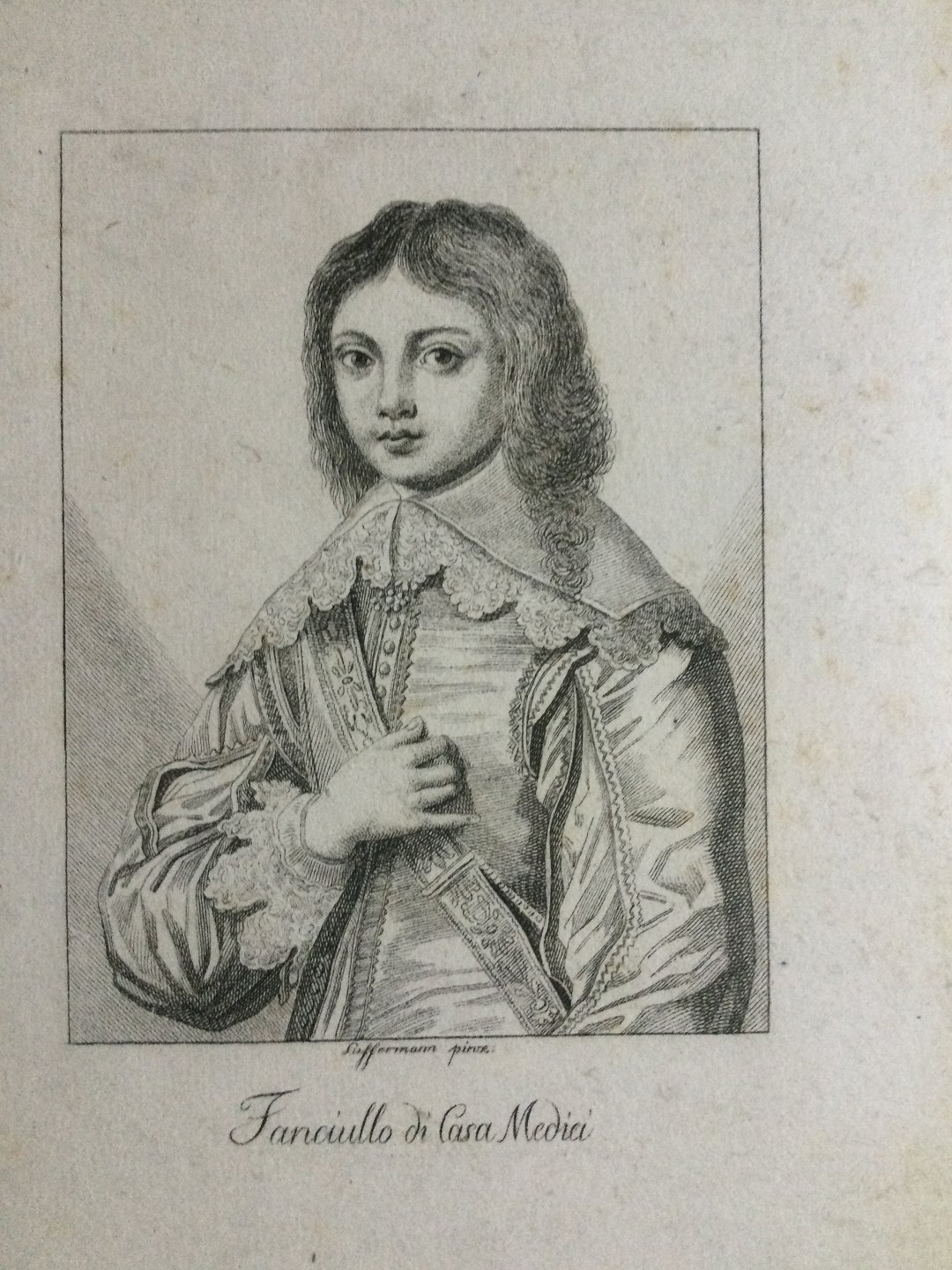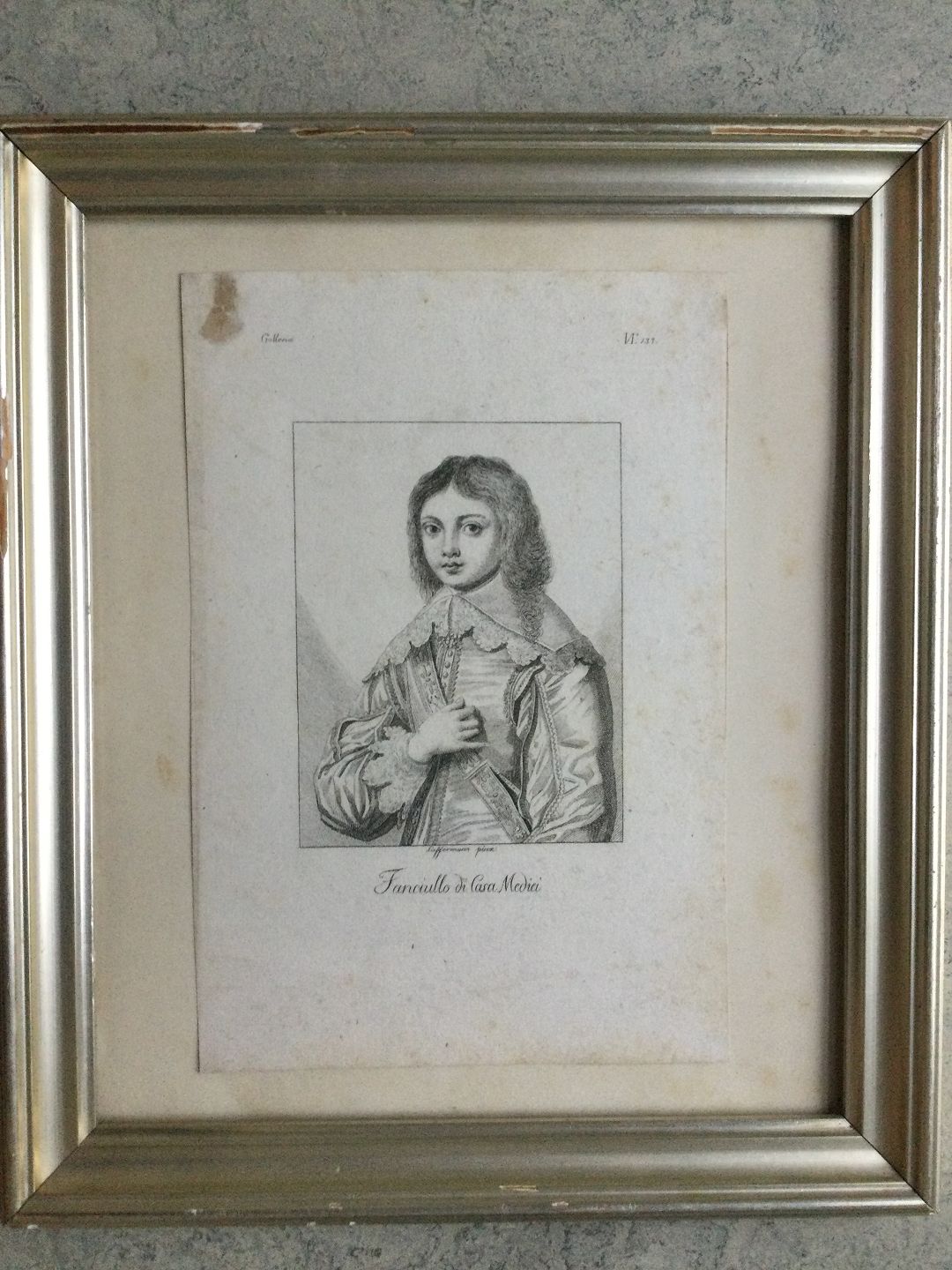 Text available in Danish: Kobberstik - Portræt af et ungt medlem af Huset Medici.