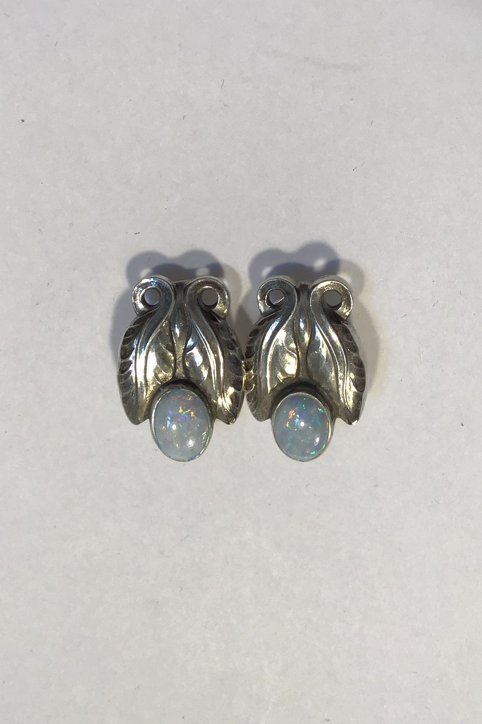 Georg Jensen Sterling Sølv Øre clips No 108 Opal Måler 1.6 cm x 2.3 cm Samlet Vægt 7.9 gr