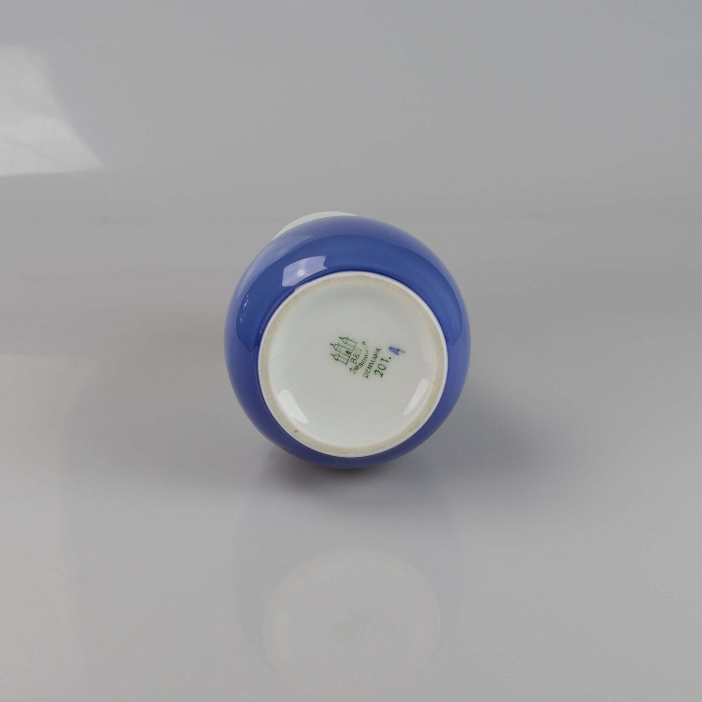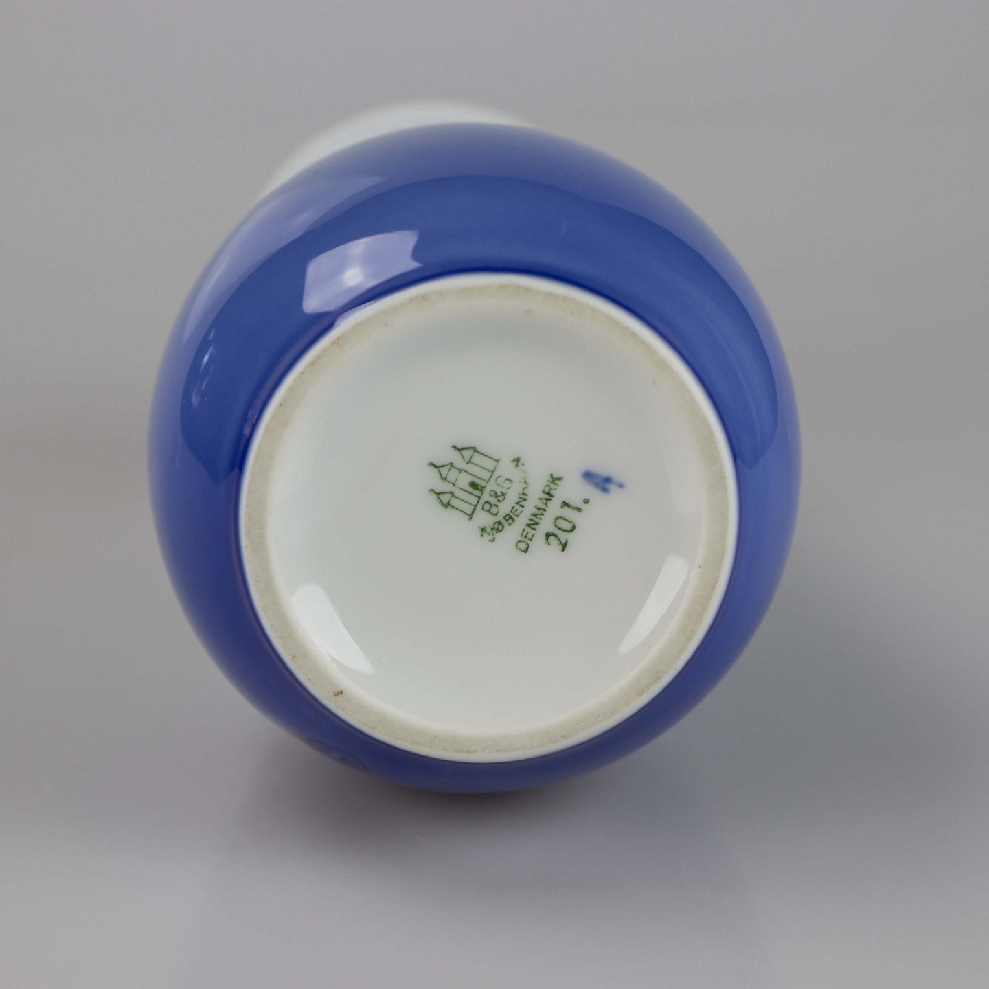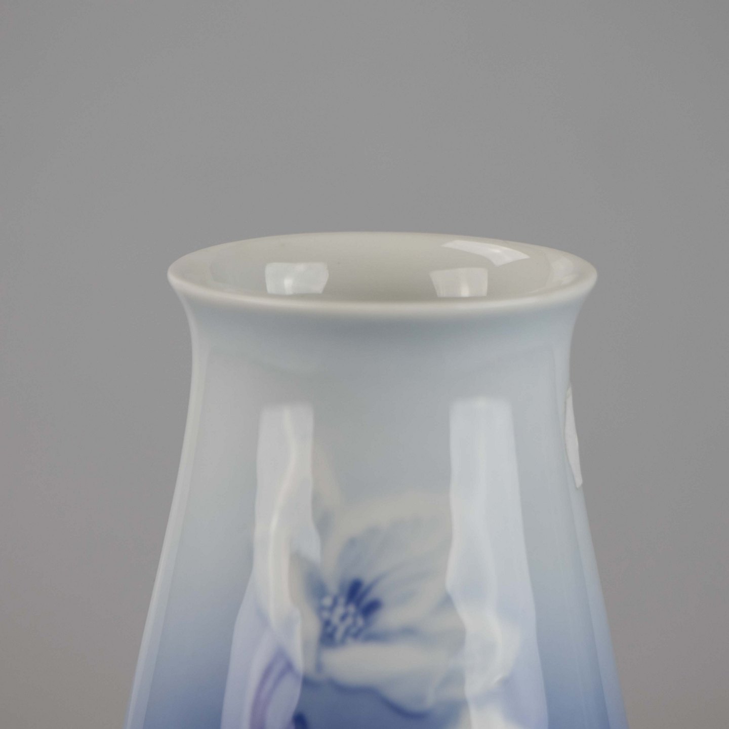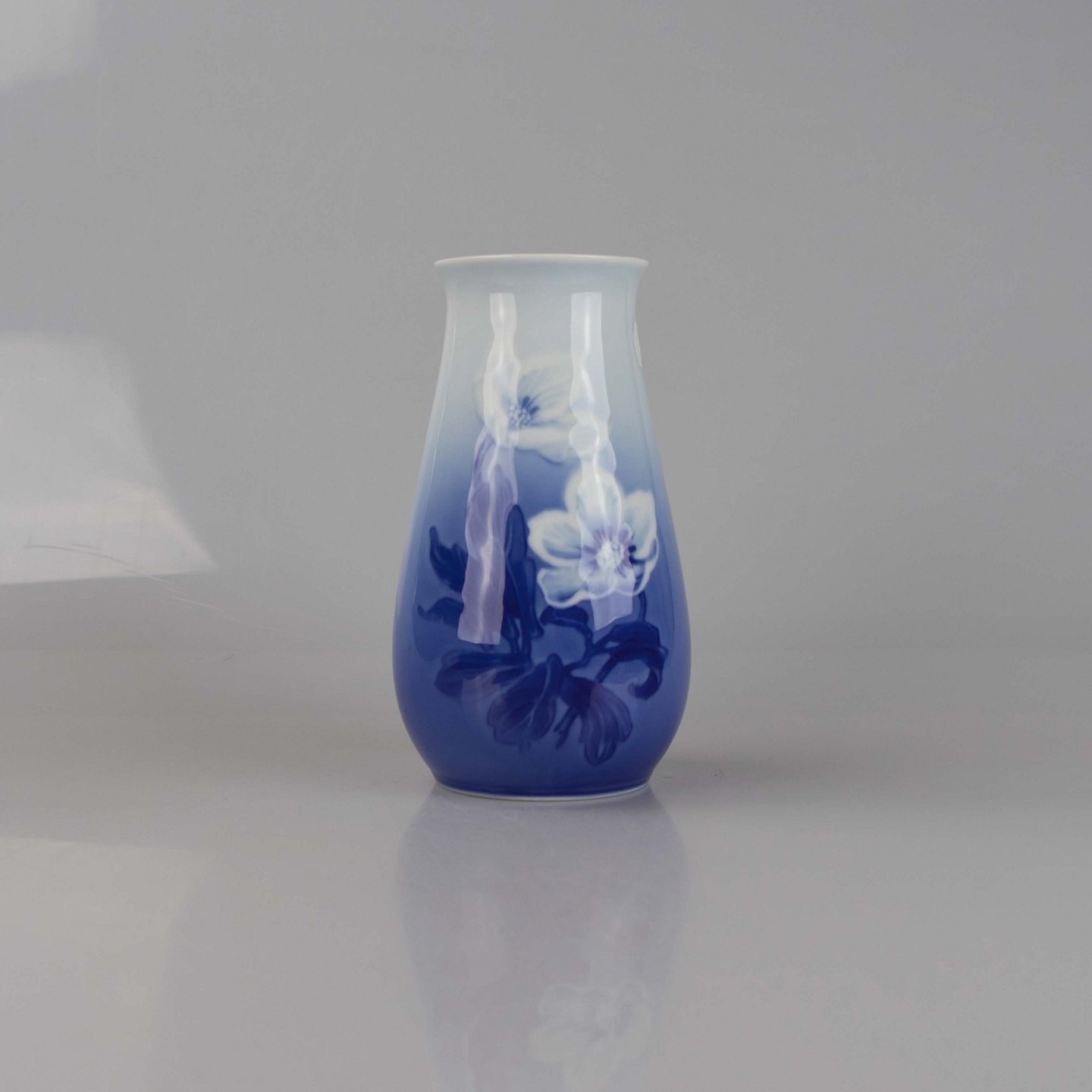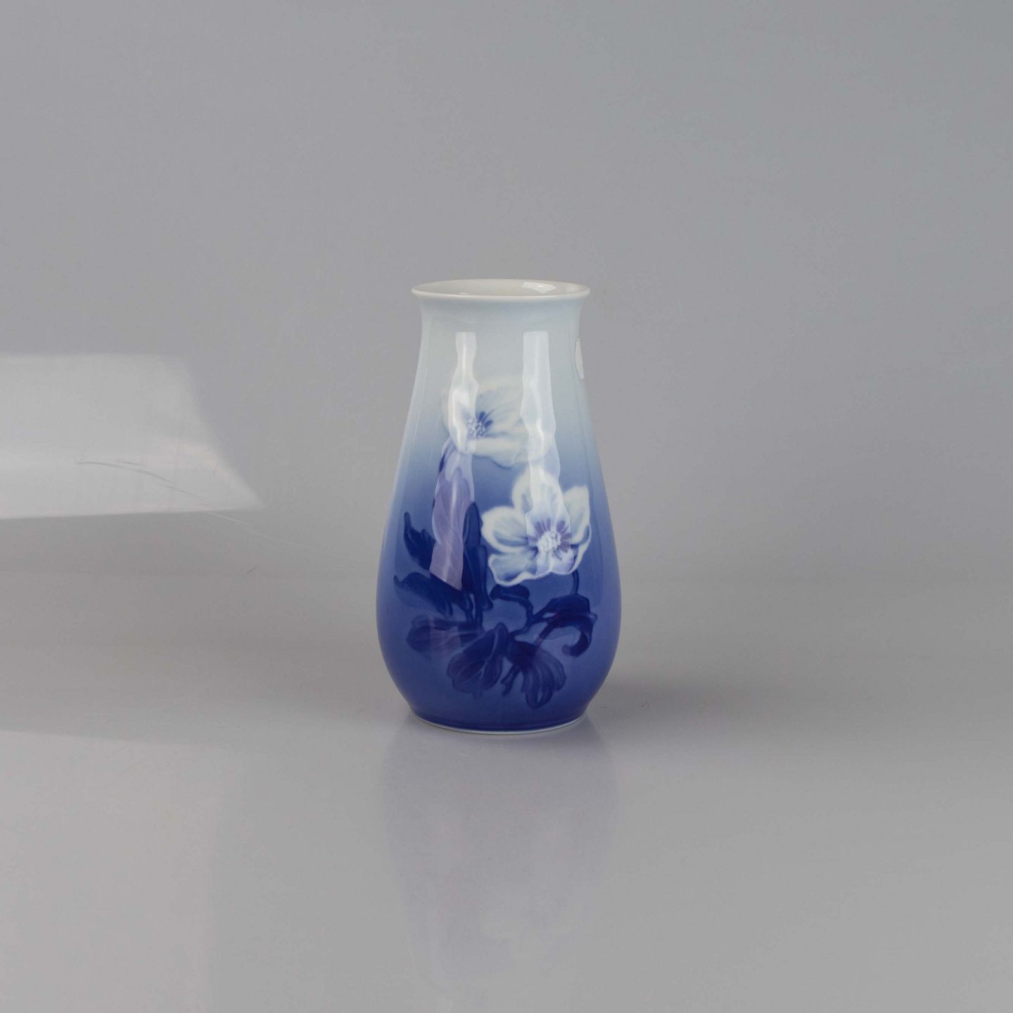 Vase i hvidt og gradueret blå porcelæn med motiv af julerose.