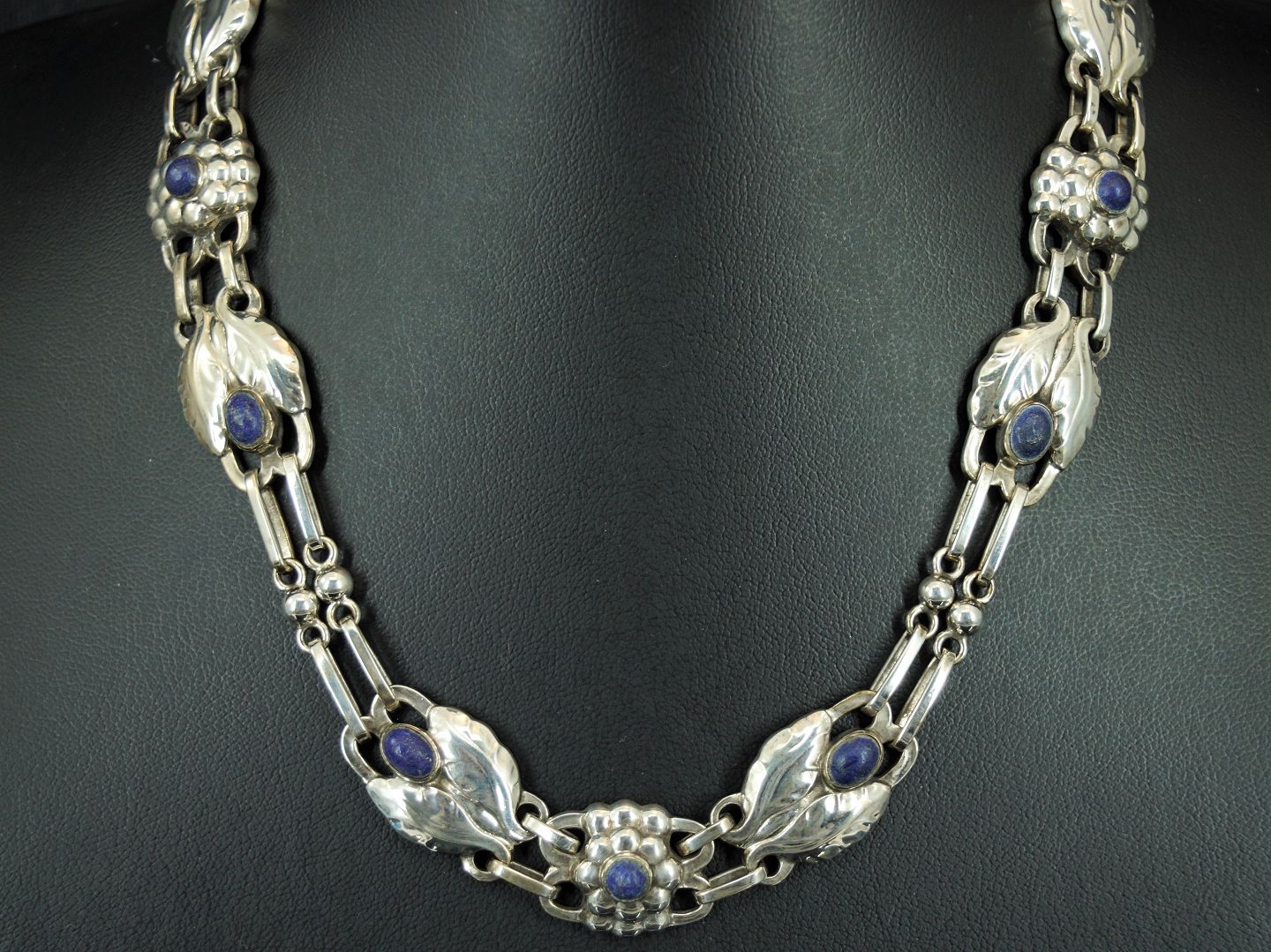 Georg Jensen; Halscollier af sølv #1, prydet med lapis lazuli.