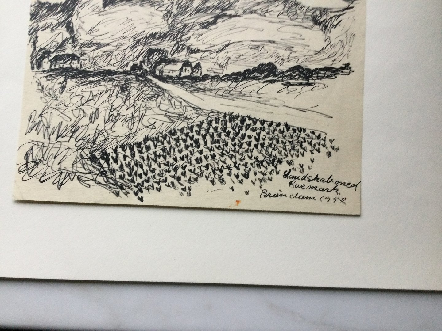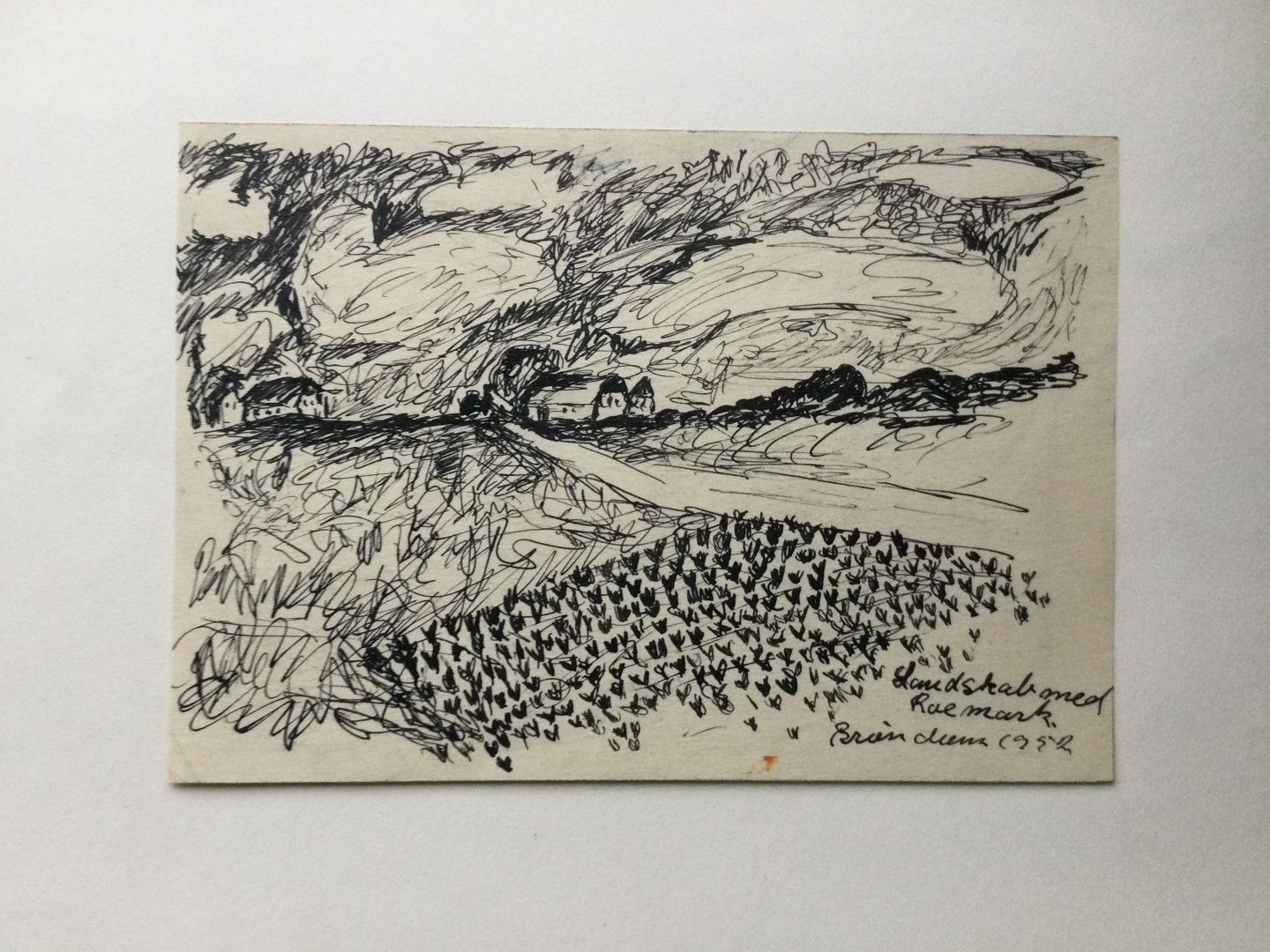 Tegning af Peder Brøndum Sørensen - Landskab med Roemark 1952.
