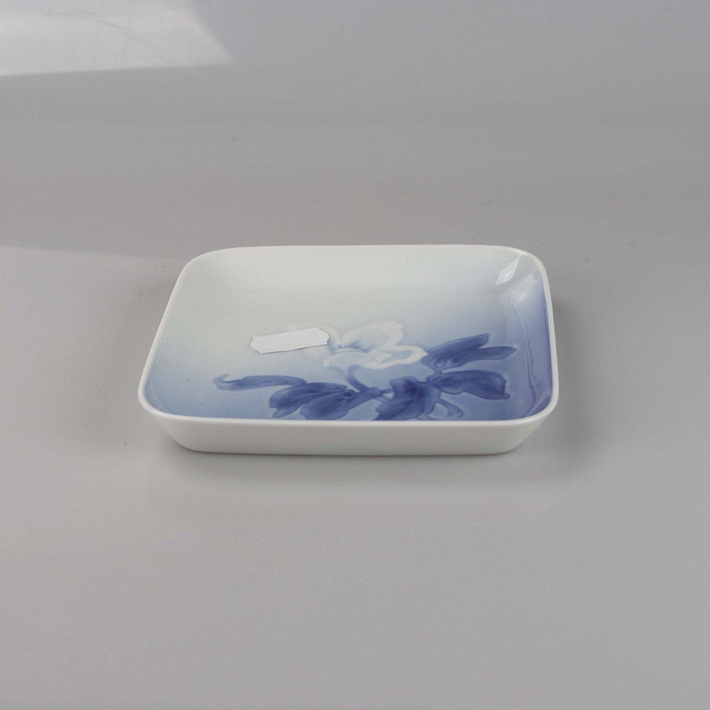 Asiet i hvidt og gradueret blå porcelæn med motiv af julerose.