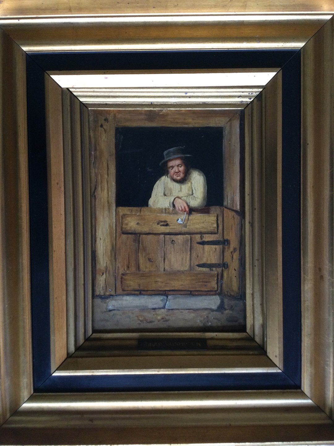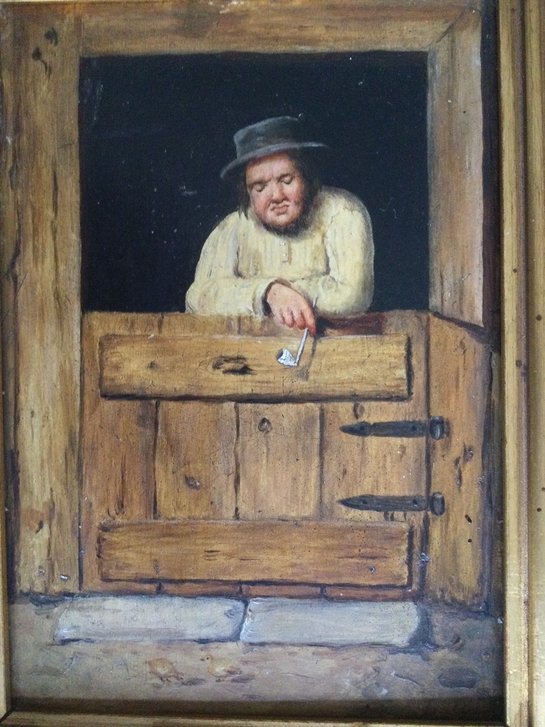 Maleri af David Jacobsen - Mand i døråbning med kridtpibe.