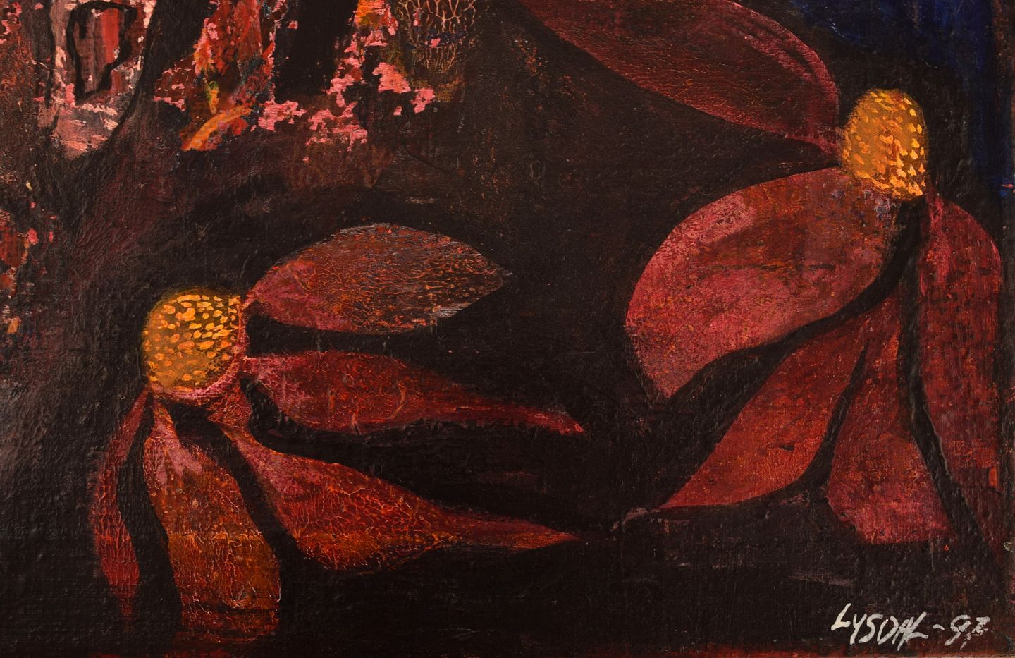 Ivy Lysdal, f 1937. Dansk keramiker og kunstmaler. Akryl på lærred. Abstrakt modernistisk maleri. Koloristisk palette. Dateret 1997.