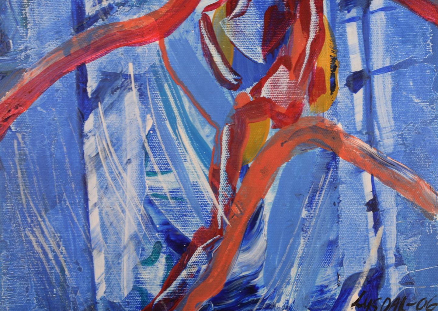 Ivy Lysdal, f 1937. Dansk keramiker og kunstmaler. Akryl på lærred. Abstrakt modernistisk maleri. Koloristisk palette. Dateret 2006.