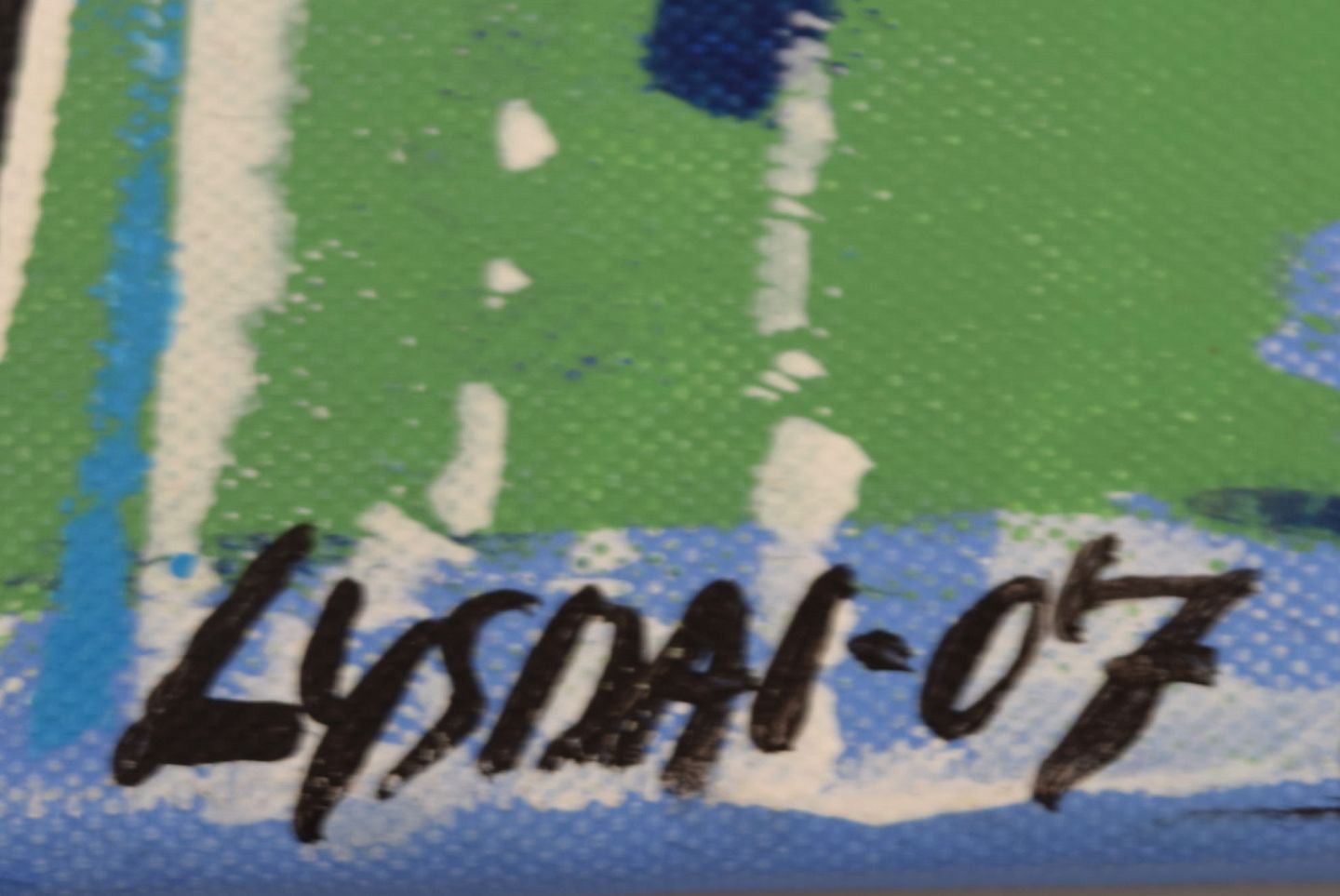 Ivy Lysdal, f 1937. Dansk keramiker og kunstmaler. Akryl på lærred. Abstrakt modernistisk maleri. Koloristisk palette. Dateret 2007.