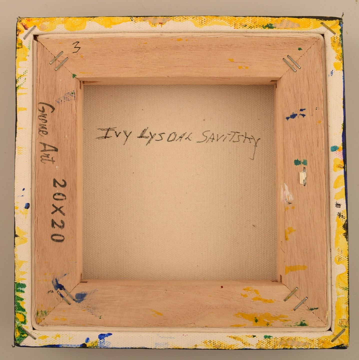 Lærredet måler: 20 x 20 cm.